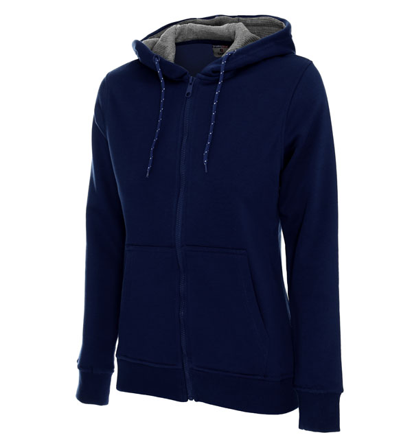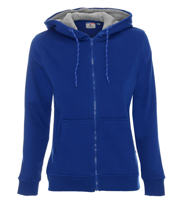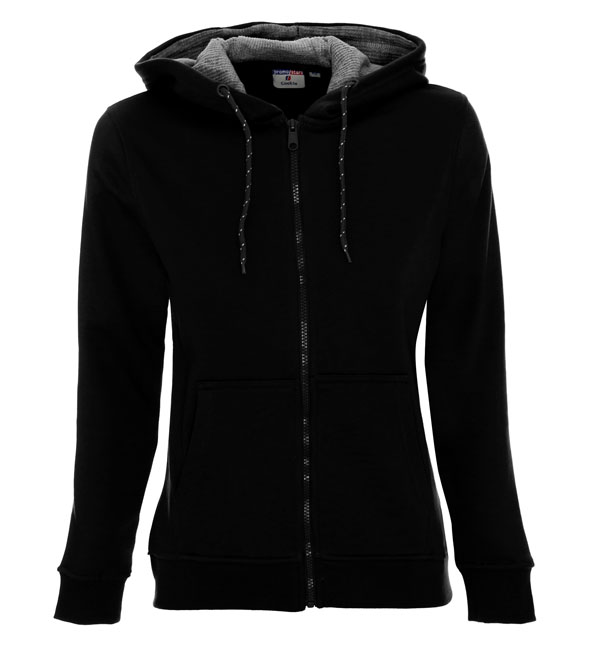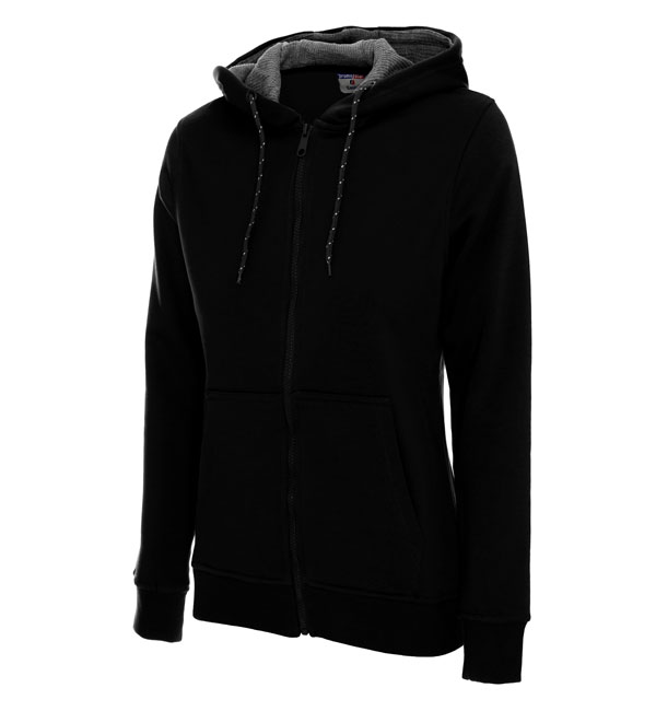 Lekka bluza z kapturem; materiał od wewnątrz szczotkowany; wykończenie antypillingowe materiału; kaptur wyścielony kontrastowym materiałem typu waffle; regulacja kaptura ozdobnym sznurkiem; zamek główny olastikowy, kostkowy; dwie przednie kieszenie; rękawy i dół bluzy wykończone elastycznym ściągaczem; podójne szwy