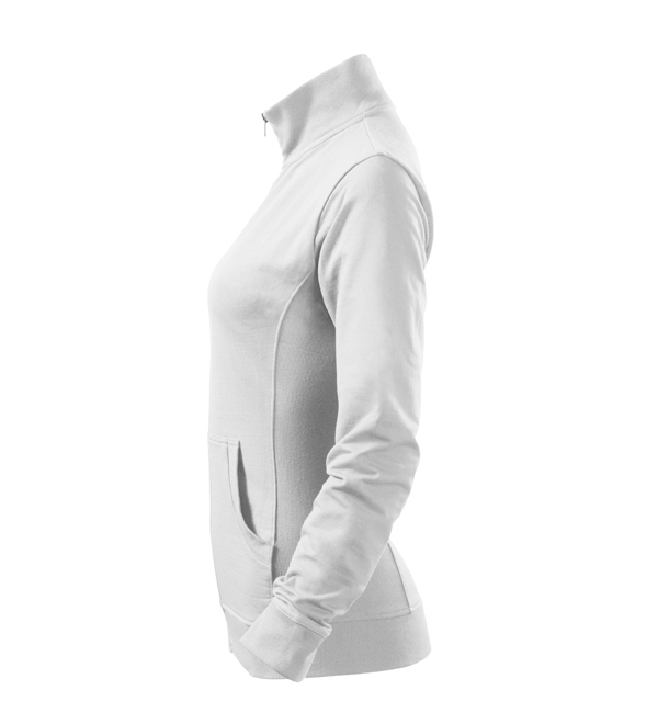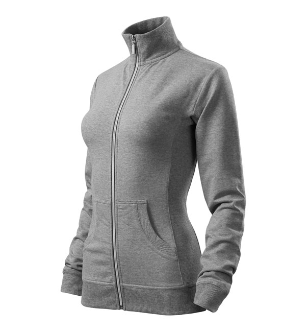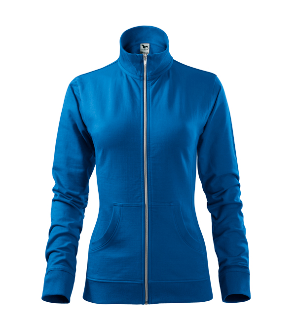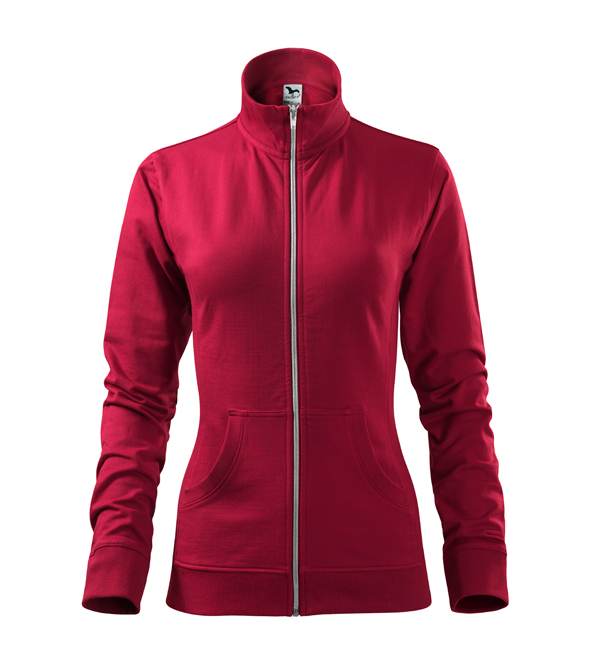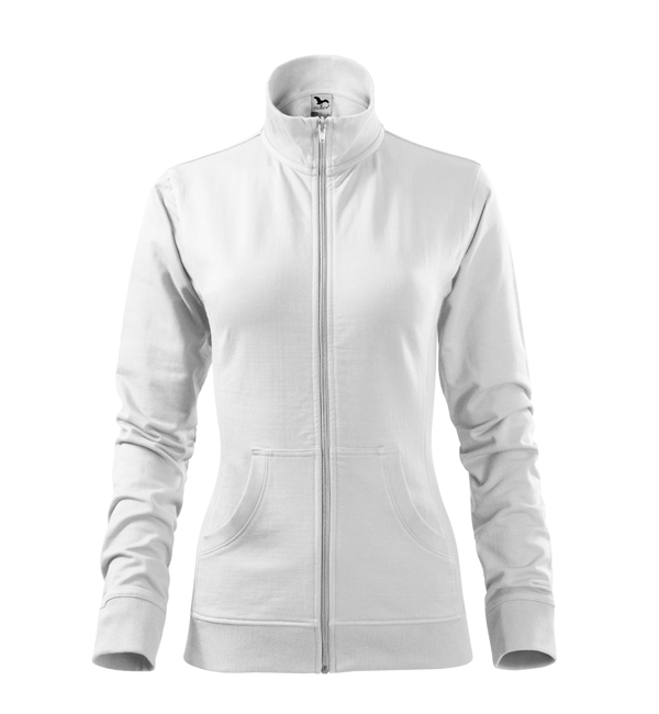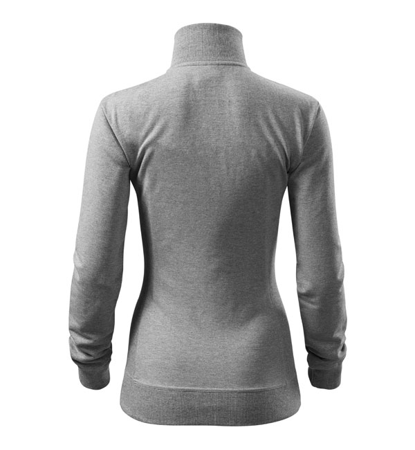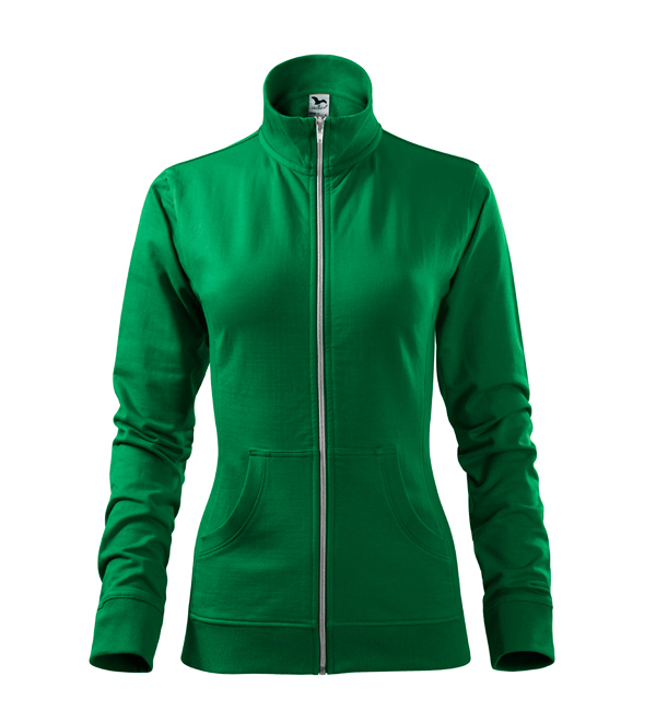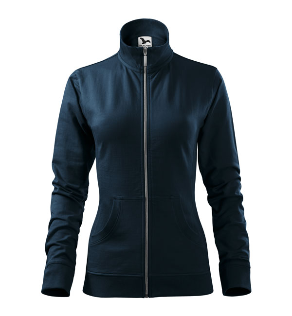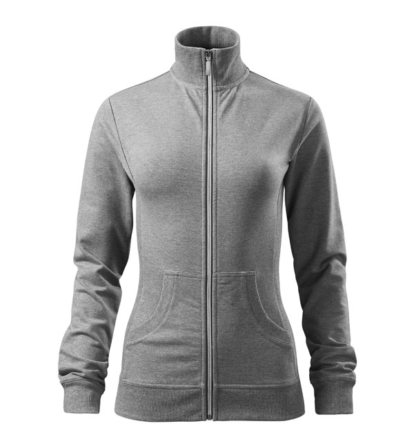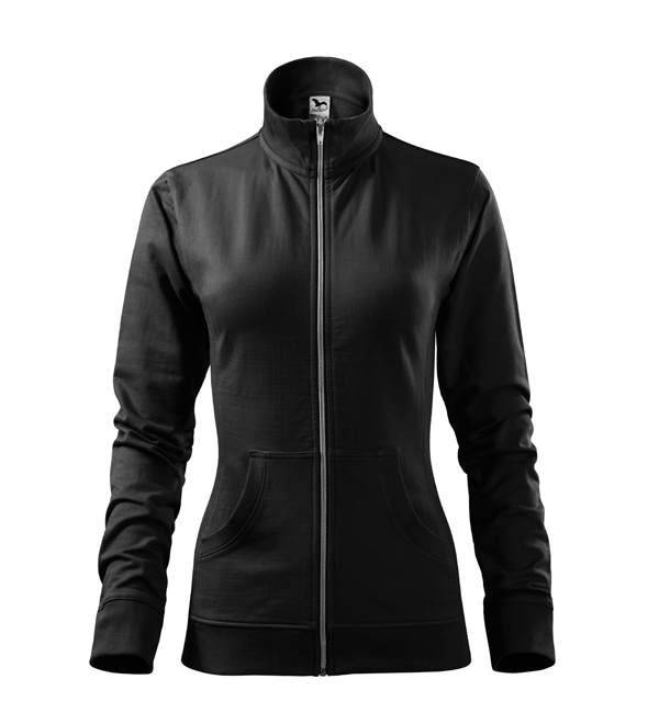 Wysokiej jakości modna bluza ze stójką ze splotu żeberkowego. Zapinana na zamek. Części boczne, lamówka dolna, mankiety rękawów oraz lamówki kieszeni wykonane ze splotu żeberkowego. Dwie kieszenie przednie. Doskonała pod haft i nadruk.