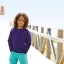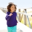 Taśma na karczku wykonana z trykotu w tym samym kolorze. Ściągacze przy mankietach, dekolcie i w pasie wykonane z prążkowanej taśmy bawełnianej z dodatkiem elastanu.