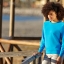Lekki materiał. Rękawy raglanowe. Ściągacze wokół szyi, w pasie i przy rękawach wykonane z prążkowanej taśmy z bawełny z Lycrą®. Szwy boczne podkreślają kobiecą sylwetkę. Wykonana z przędzy Belcoro® miększej w dotyku i lepszej w procesie nadruku.