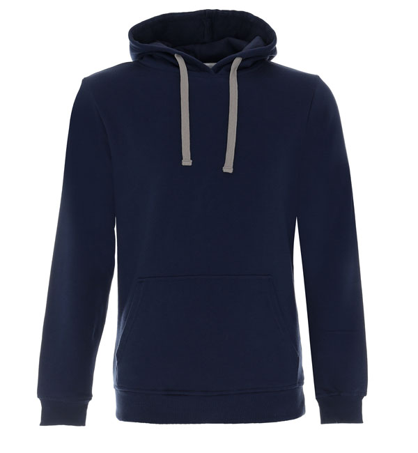 Prosta i klasyczna bluza z kapturem; kaptur wyścielony materiałem; materiał szczotkowany od wew.; kieszeń typu "kangurek"; regulacja kaptura na sznurek; podwójne szwy; elastyczne ściągacze