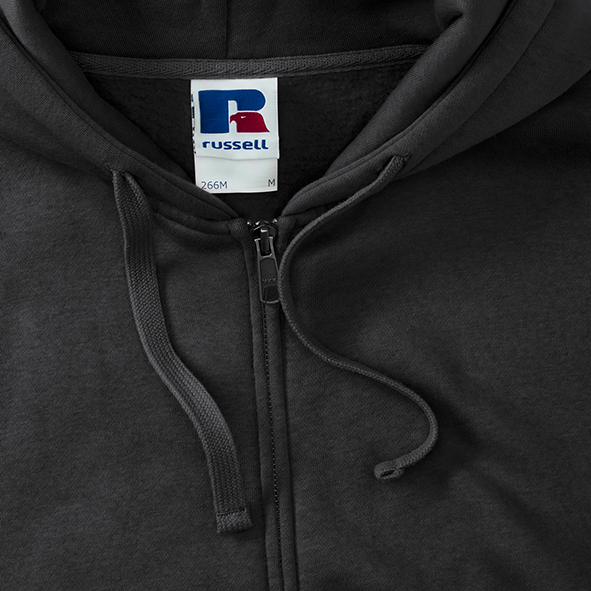 Bluzy męskie marki Russell z dwuwarstwowym kapturem z kanałem dla sznurka. Wykonane w 80% z gładkiej bawełny ring-spun, w 20% z poliestru (trójwarstwowa tkanina). Szeroki, płaski sznurek w kolorze bluzy. Kieszeń typu kangurka. Prosty, nowoczesny krój, szwy boczne. Ściągacz w pasie i przy mankietach. Wzdłuż karku taśma wzmacniająca. Dostęp do urządzenia MP3 i słuchawek dousznych.