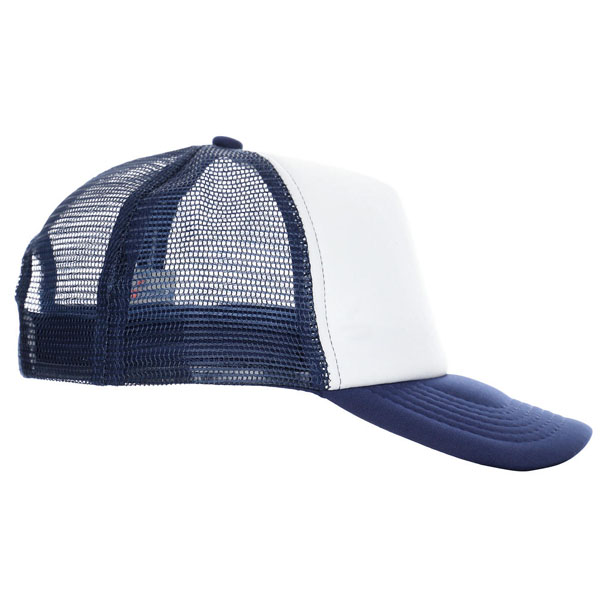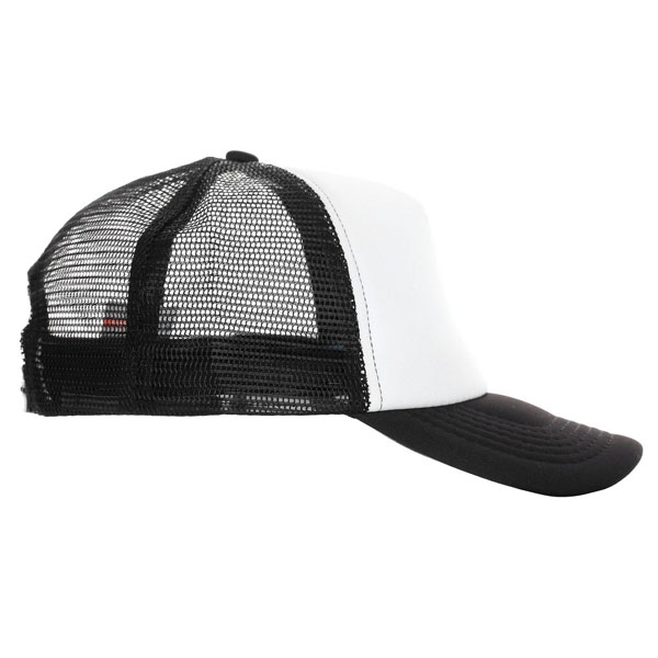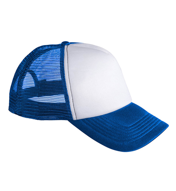 Przedni panel w kolorze białym wypełniony grubą,sztywną pianką; daszek pokryty pianką; tylne panele wykonane z siatki; tylna regulacja; 5 paneli.
