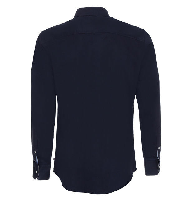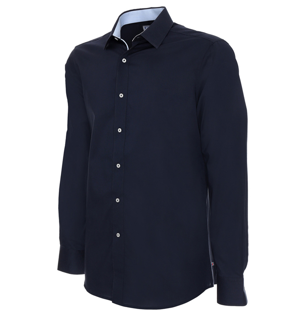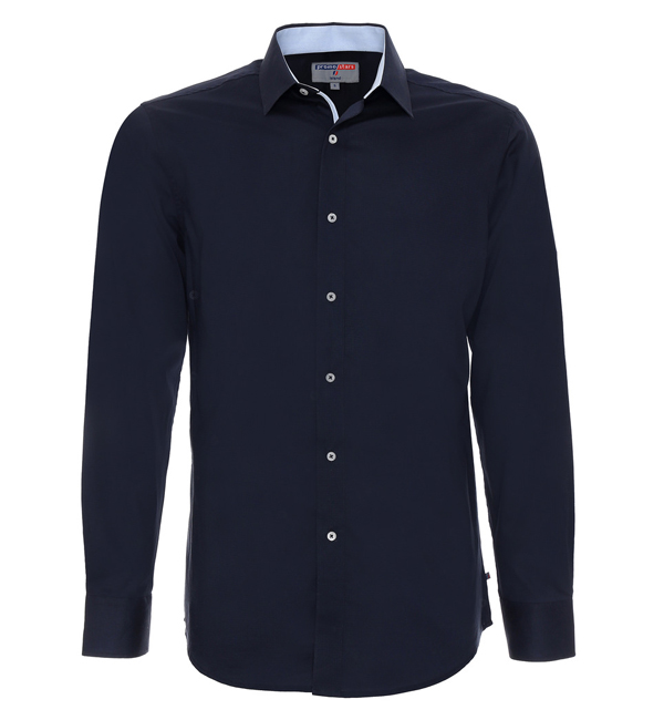 Koszula męska; tkanina typu ripstop; klasyczny krój; elementy w kontrsatowym amteriale, kontrastowe guziki.