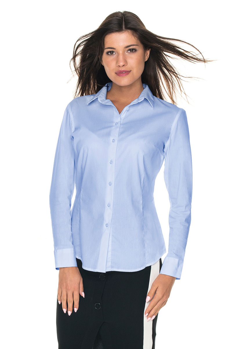 Klasyczna koszula z długim rękawem; dopasowany krój; elastyczny materiał typu plain weave; materiał łatwy w prasowaniu; usztywniony kołnierzyk ze stójką