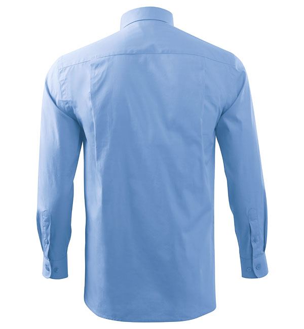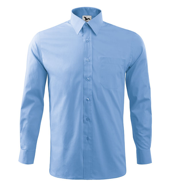 Wysokiej jakości koszula męska z długim rękawem, wykonana z przylegającego, przewiewnego materiału. Na przedniej stronie po lewej - naszywana kieszeń. Obszyte przednie brzegi. Zapięcie na guziki. Dwuczęściowy kołnierz koszulowy. Mankiet do regulacji – na dwa guziki. Doskonała pod haft i nadruk. Tkana metka. Wszywka satynowa z symbolami dot. konserwacji odzieży.