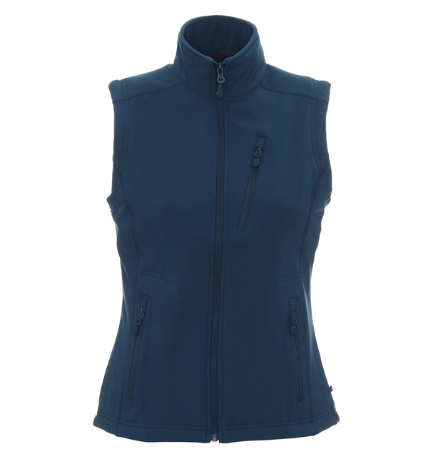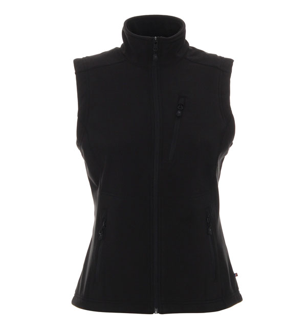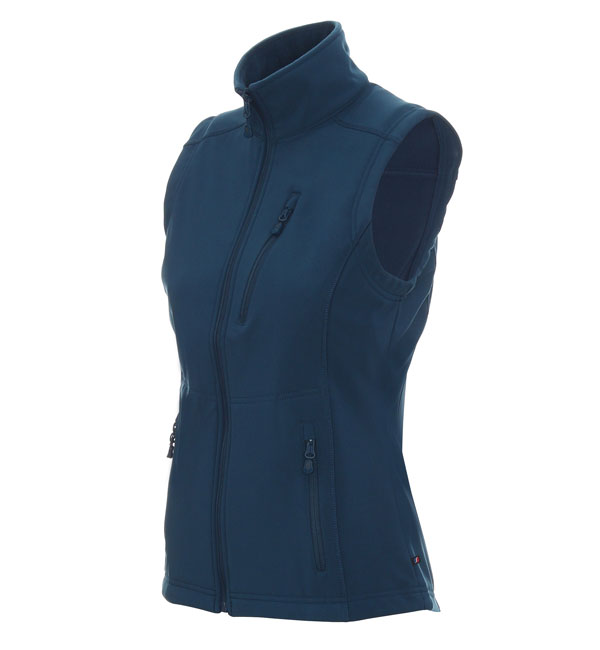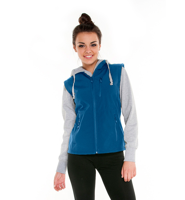 Kamizelka z membraną; materiał typu softshell połączony z polarem; dwie kieszenie boczne i jedna kieszeń na piersi zamykane na zamek; wydłużony tył; wodoodporność: 3000 mm słupa wody; oddychalność: 500 g/m2/24e.