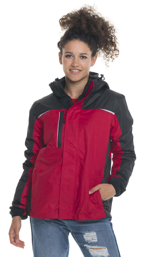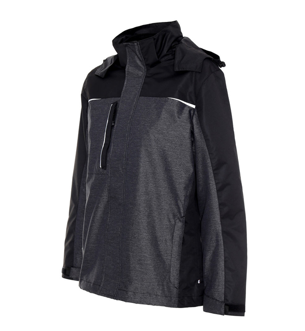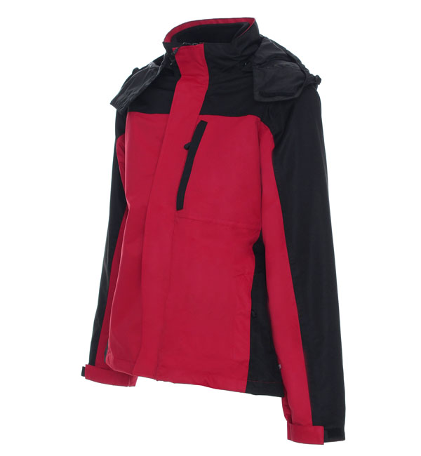 Kurtka z odpinanym polarem; trzy kieszenie zewnętrzne zapinane na suwak; system wywietrzników pod pachą; system ściągaczy u dołu wewnątrz; odpinany kaptur; regulowane makiety; wodoodporność 2000mm słupa wody; oddychalność 2000g/m2/24h.