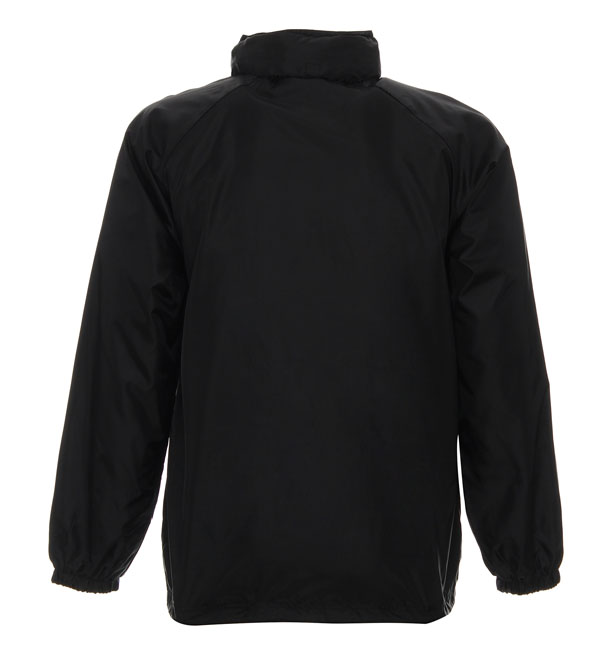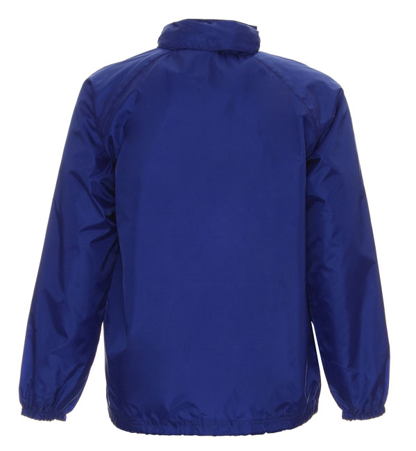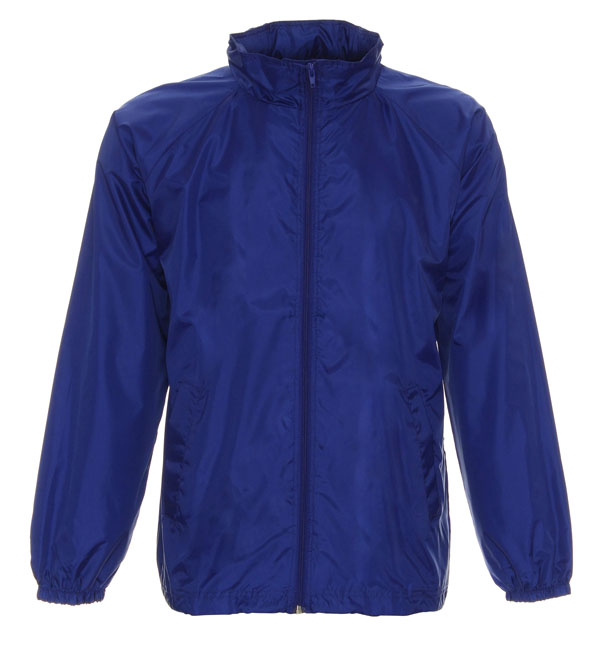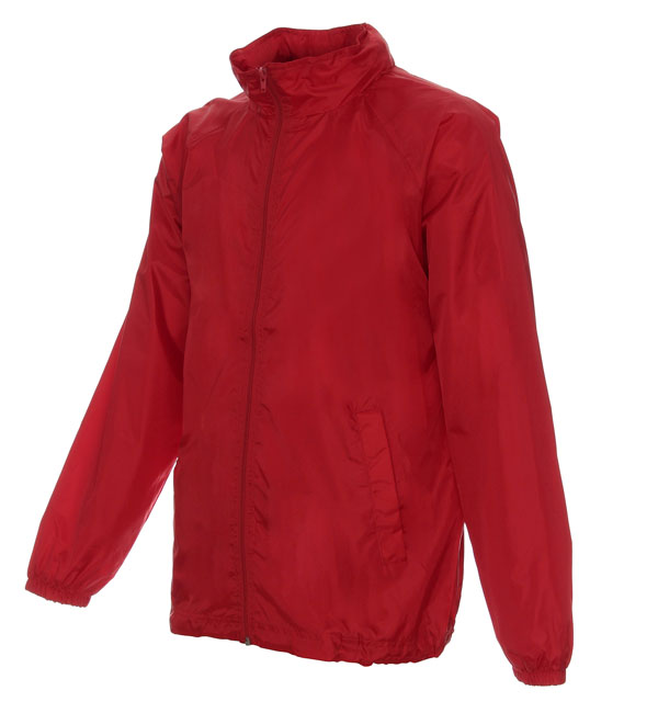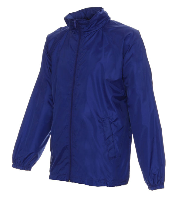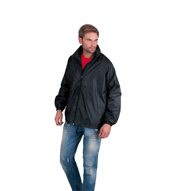 Kurtka wiatroszczelna z podszewką; kaptur chowany w stójce; dwie kieszenie zewnętrzne; system ściągaczy u dołu.
