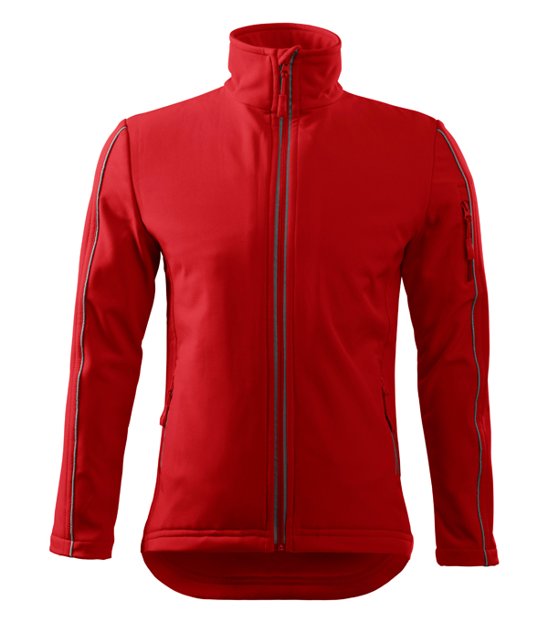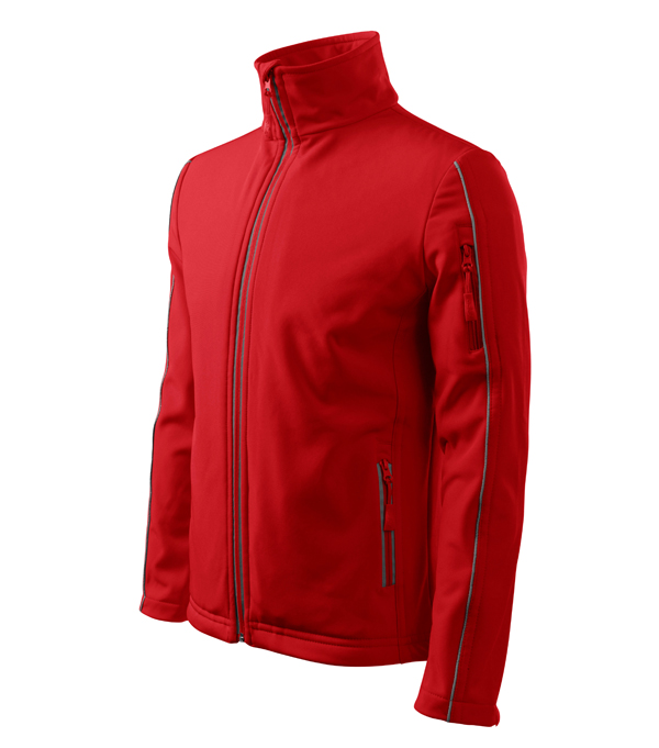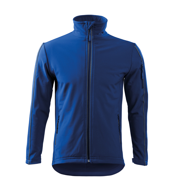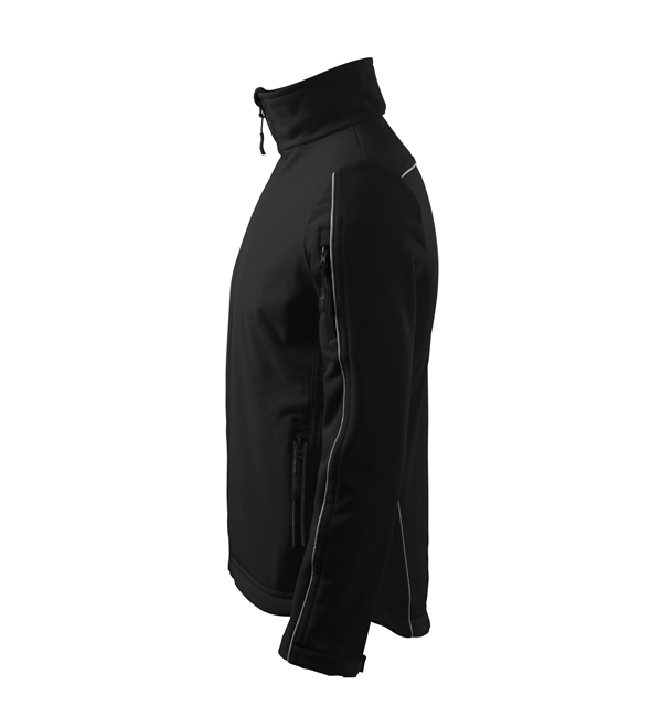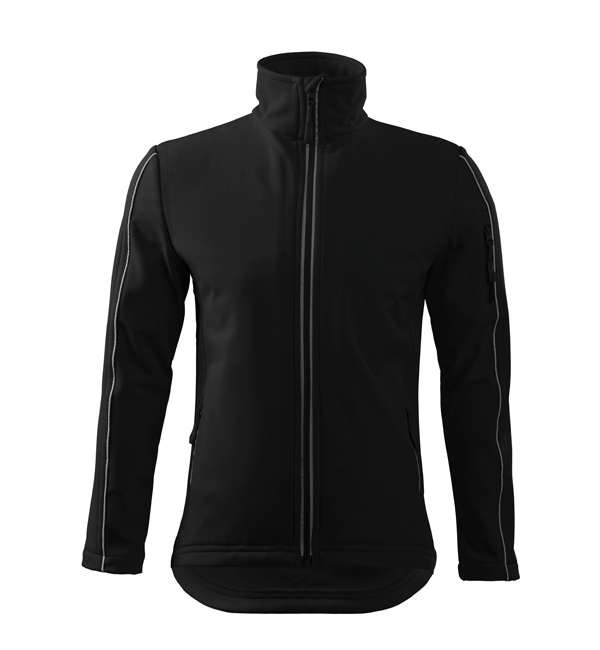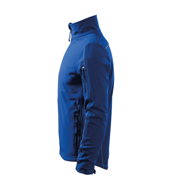 Przewiewna kurtka typu softshell dla mężczyzn, doskonała ochrona przed wiatrem i deszczem. Odblaskowe paski na przedniej jak i tylnej części kurtki. Zamek na całej długości kurtki, suwak podszyty taśmą, która równocześnie chroni górny brzeg suwaka. Dwie kieszenie przednie z odblaskowymi paskami, zamykane na suwak, mała kieszonka na lewym rękawie. Wewnętrzna kieszeń na wysokości piersi, otwór na słuchawki. Możliwość regulacji dolnej lamówki rękawów (rzep). Przedłużona część tylna. Wodoodporność 14 000 mm. Oddychalność 2 000 g/m2/24 godz.