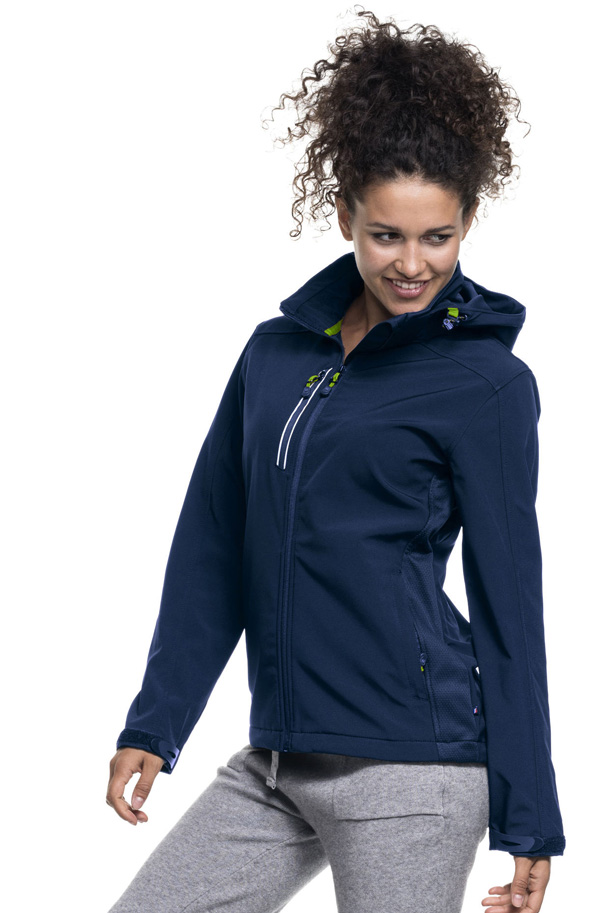 Lekka oddychająca kurtka z membraną, materiał połączony z polarem, odpinany kaptur, dwie kieszenie boczne i kieszeń na piersi zamykane na zamek, system ściągaczy u dołu wewnątrz, zamki pod pachą, regulacja mankietów na rzep, wodoodporność 8000 mm, oddychalność 5000 g/m2/24h.