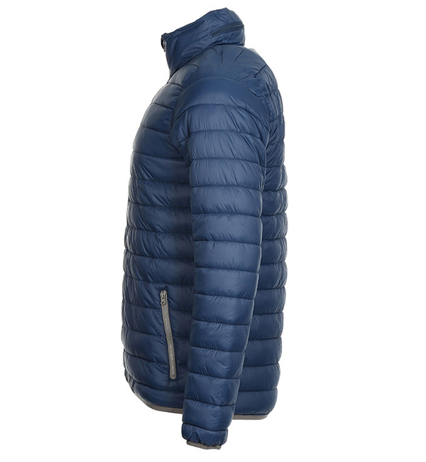 Ta lekka pikowana kurtka dla mężczyzn z połyskliwą nylonową warstwą zewnętrzną i poliestrowym wypełnieniem zapewnia znakomitą izolację termiczną. Ma też przydatne detale: stojący kołnierz z wbudowanym kapturem, zamki błyskawiczne w kontrastującym kolorze i poliestrowe obszycia.