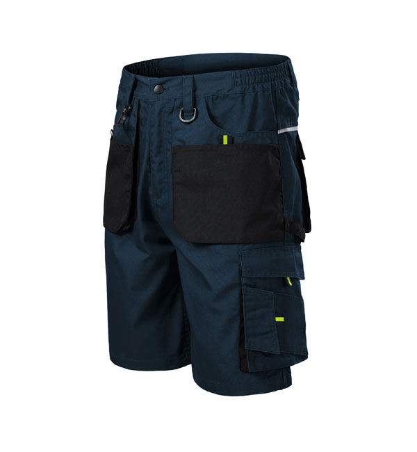 Wygodne i wytrzymałe spodenki robocze. Splot płcieńny; taśma odblaskowa w tylnej części, wielofunkcyjne kieszenie; elastyczna taśa wokół pasa regulowana ściągaczem; CORDURA w kontrastowym kolorze.