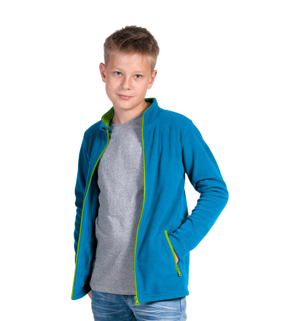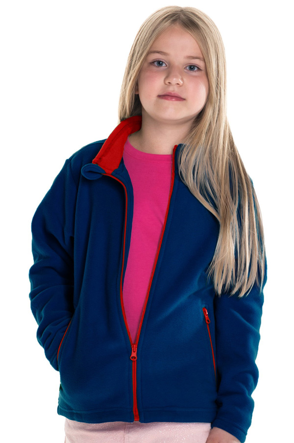 Polar dziecięcy wykonany z mikropolaru; materiał miękki i przyjemny w dotyku; kieszenie zapinane na zamek; taśma twillowa; ozdobne szwy; kontrastowe wykończenia.