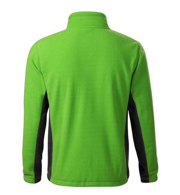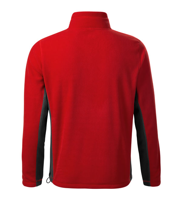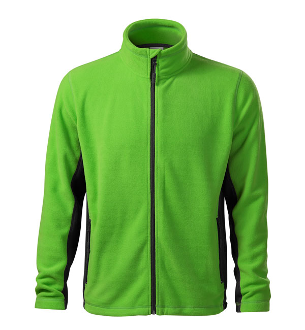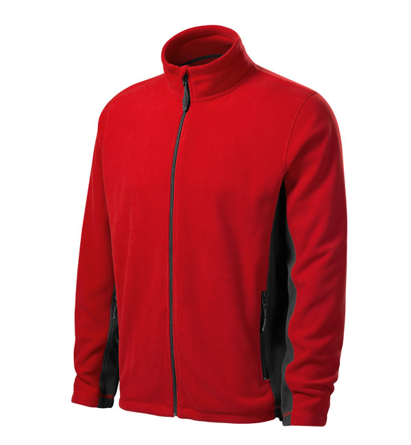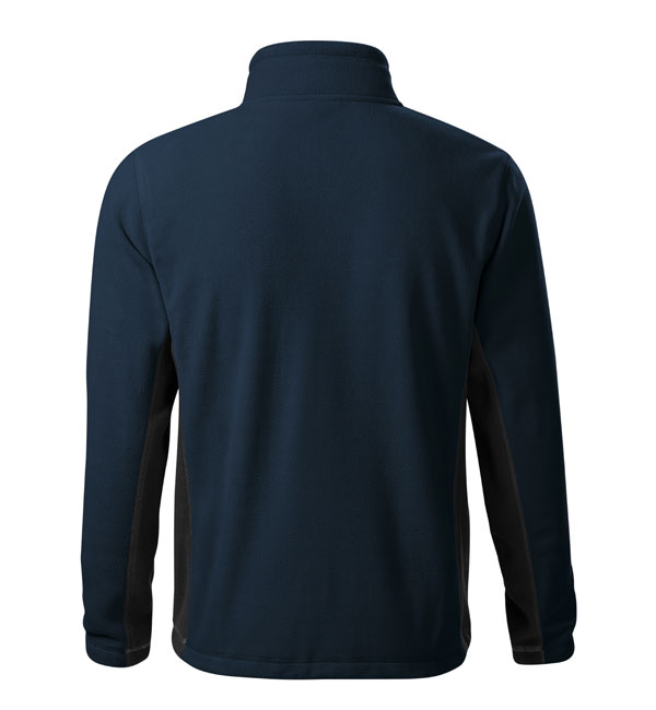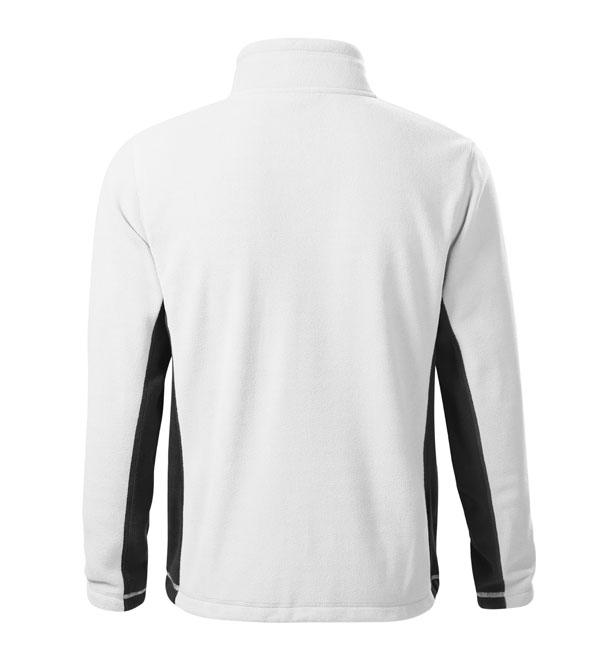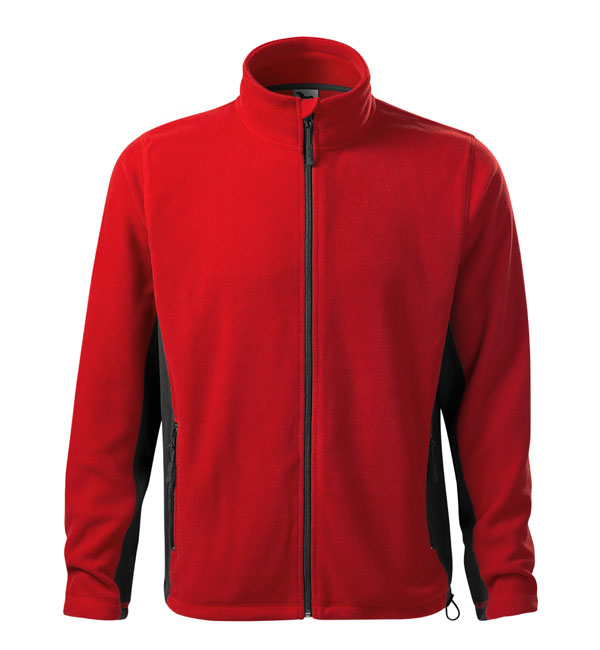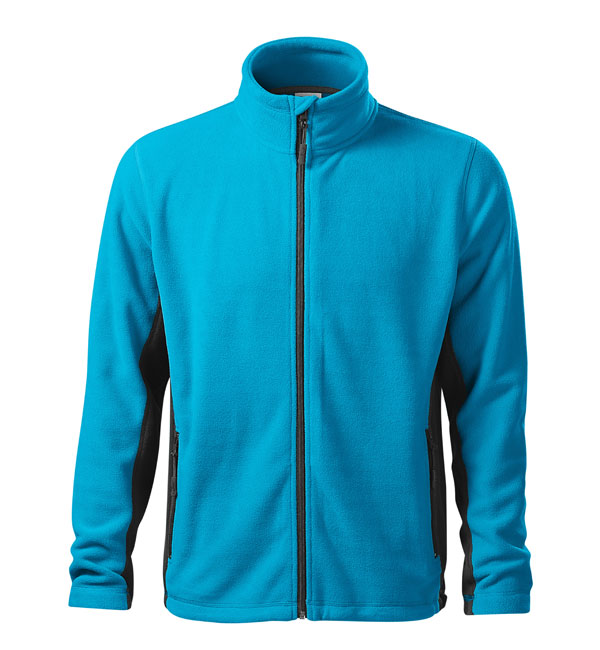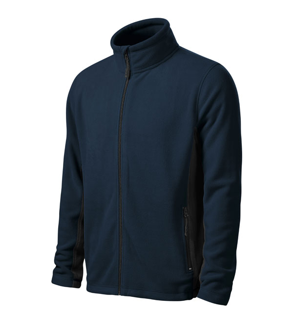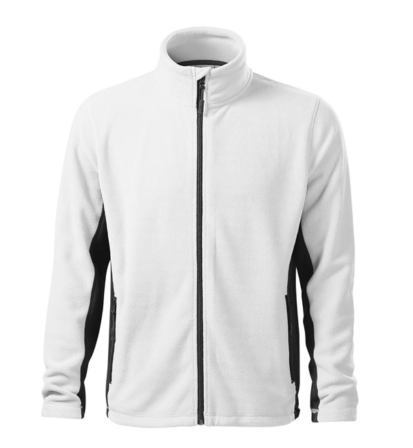 Męski polar wykończony kontrastowymi dodatkami; 2 kieszenie przednie zapinane na zamek błyskawiczny; kołnierz stojący z zabezpieczeniem zamka pod brodą; ozdobne szwy; dolny ściągacz regulowany za pomocą elastycznego sznurka; wykończenie antypillingowe na zewnętrznej stronie.