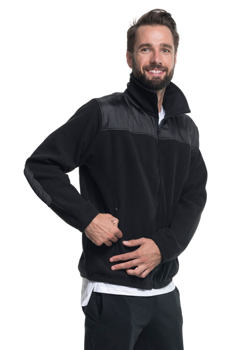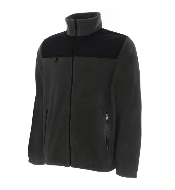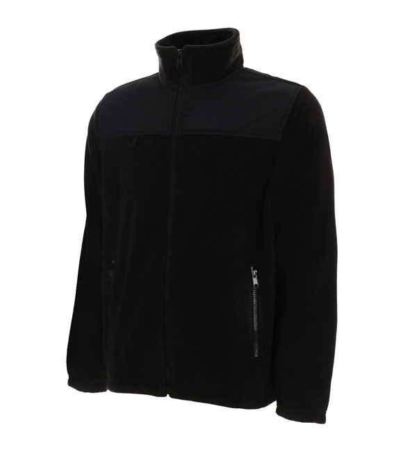 ciepły, grubu polar; z przodu i z tyłu wstawka materiału umożliwiająca wykonanie nadruku; wykończenie antypillingowe oraz water-repellent; zamki kostkowe; elastyczna taśma wszyta w dole bluzy i rękawów