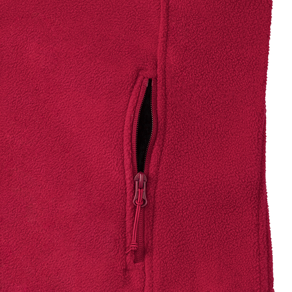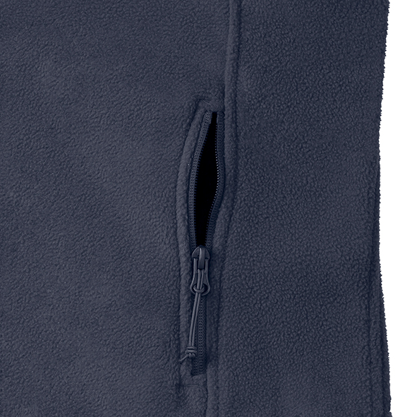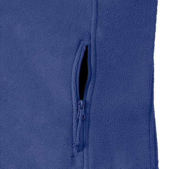 Damski polar reklamowy z długim zamkiem Outdoor Fleece marki Russell. Produkt o panelowej strukturze i gładkiej powierzchni. Sznurek ściagający w dolnym obszyciu. Kołnierz wokół szyi. Boczne kieszenie z suwakami, podszewka z siatki. Suwaki wyposazone w sznurek do zapinania.