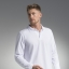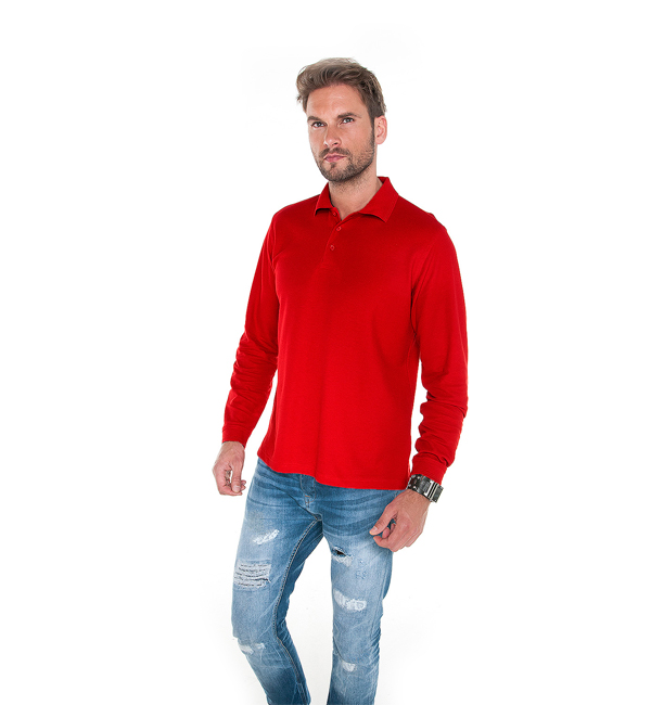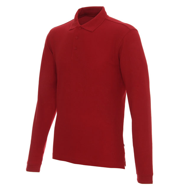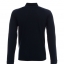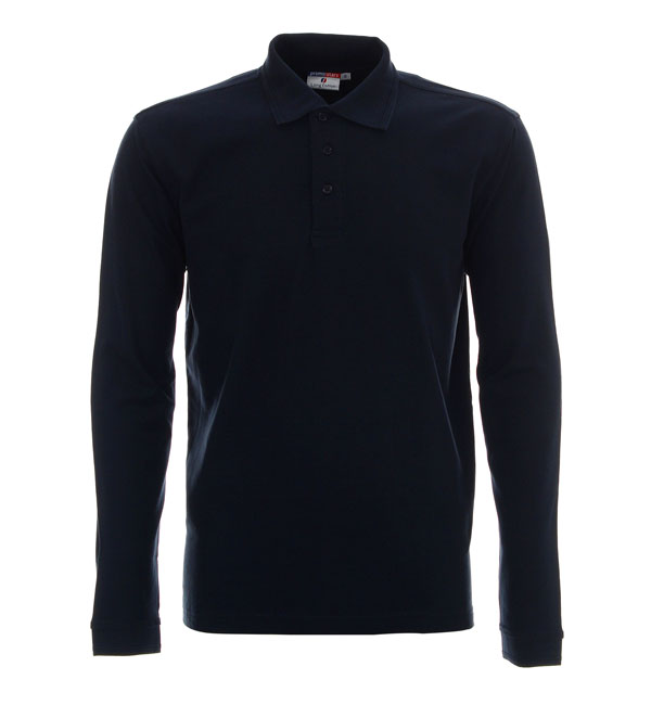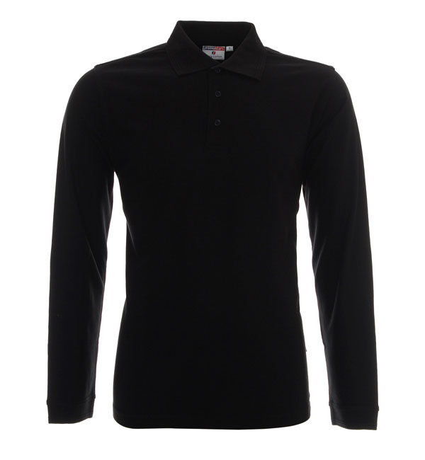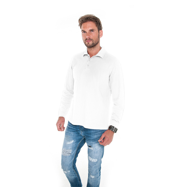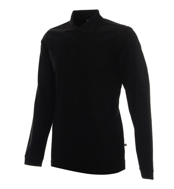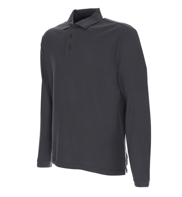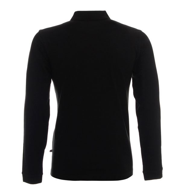 Płaski kołnierz z podwójnymi strukturalnymi paskami; dzianina typu pique; taśma twillowa; rozcięcie na bokach; podwójne szwy.