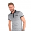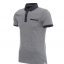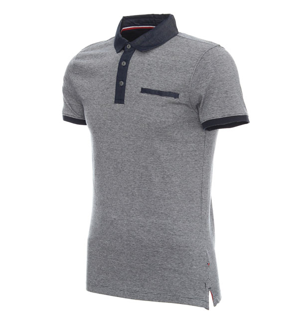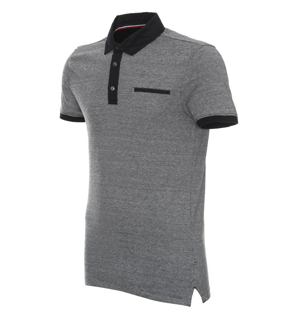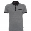 Materiał prążkowany, dopasowany krój, kołnierzyk i ściągacze rekawków w jednolitym kolorze, taśma kontrastowa wewnątrz kołnierzyka i na listwie z guzikami, rozcięcia po bokach, podówjne szwy.