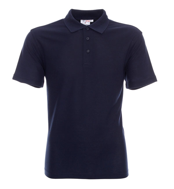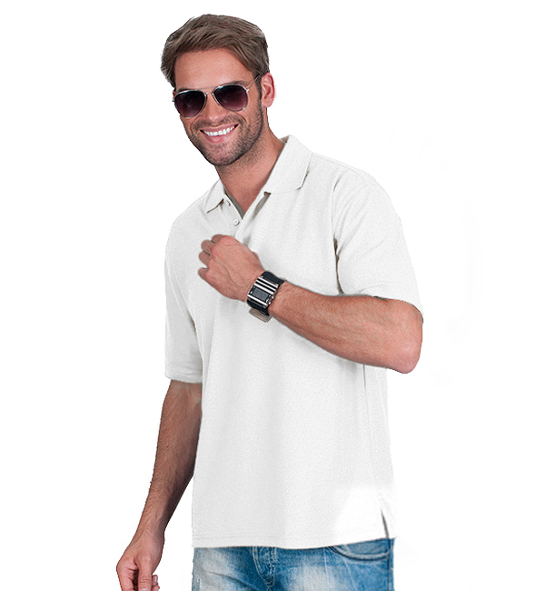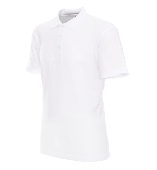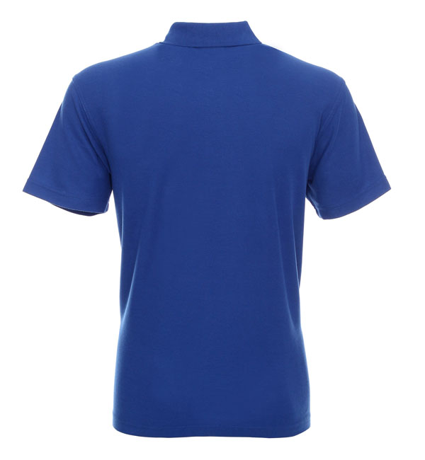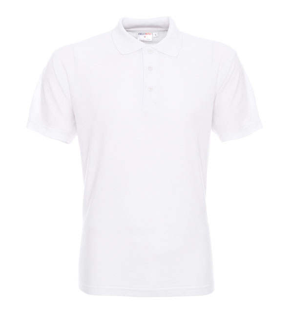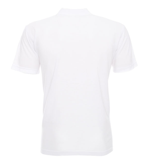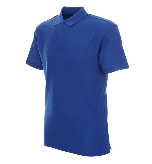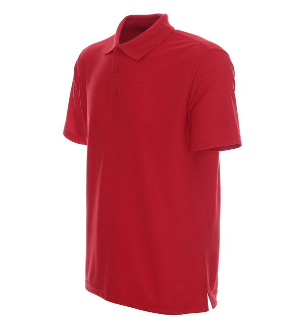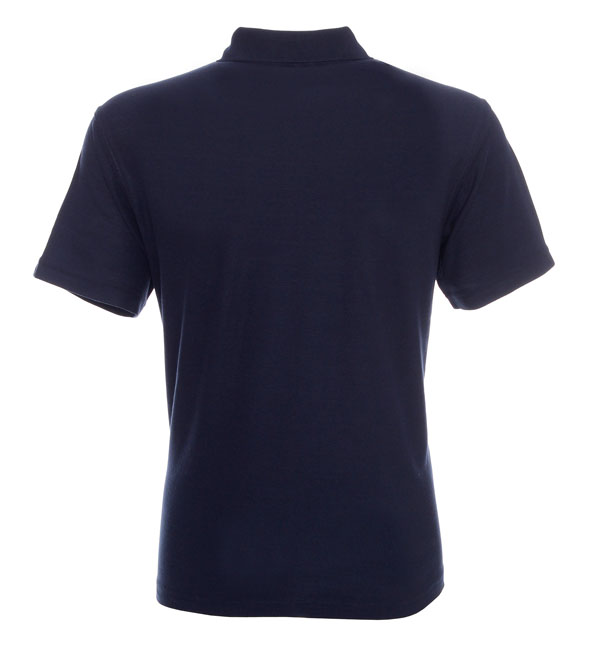 Płaski kołnierz; dzianina typu pique; rozcięcie na bokach; podwójne szwy.