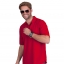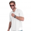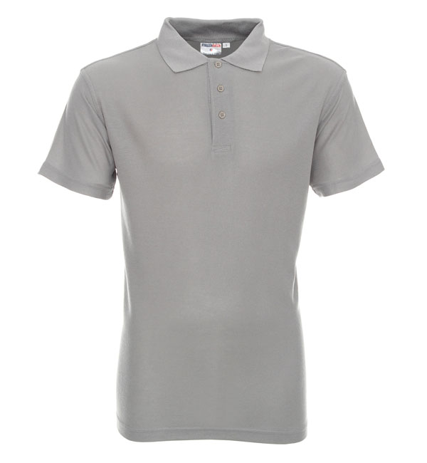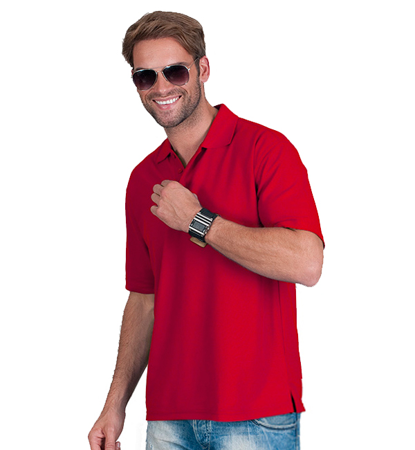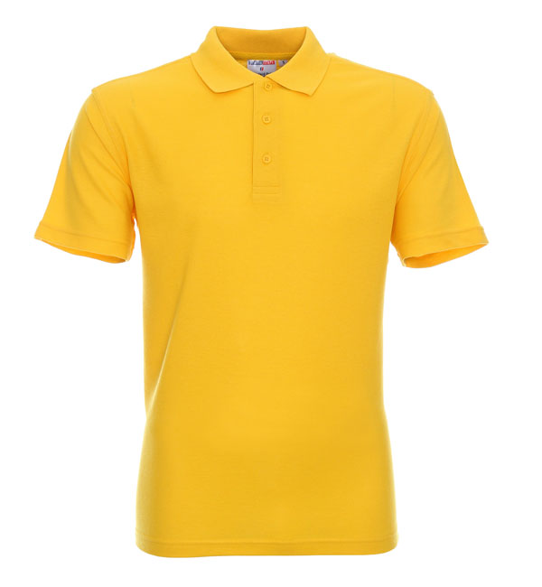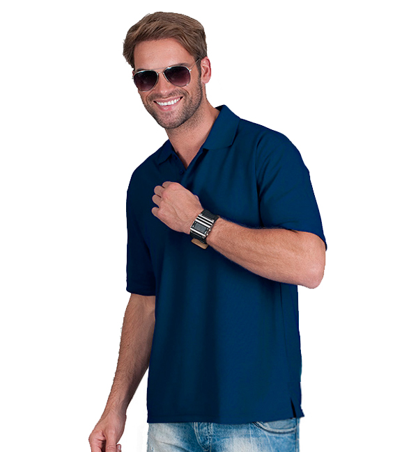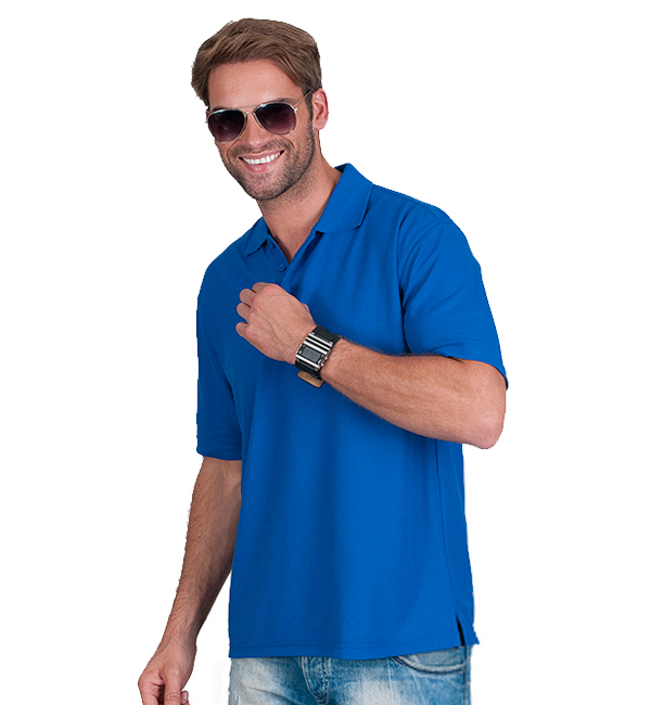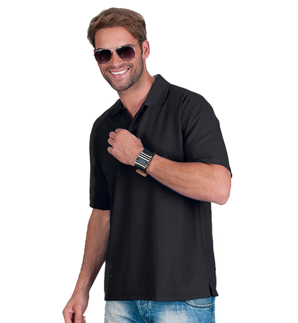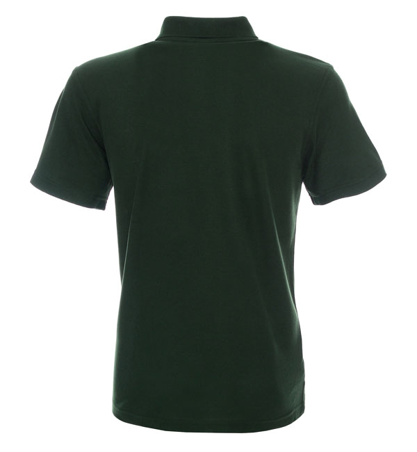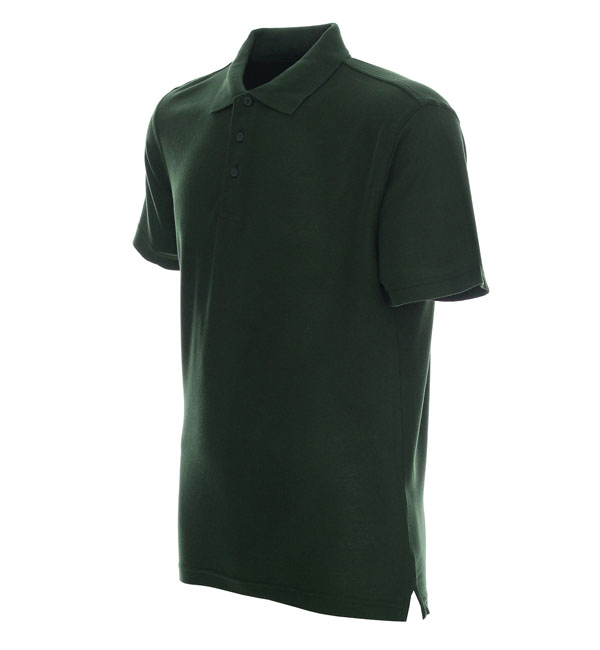Płaski kołnierz; dzianina typu pique; rozcięcie na bokach; podwójne szwy.