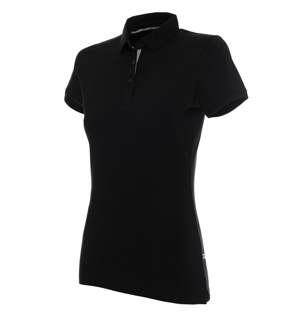 Dzianina typu pique; kołnierz ze stójką; 3 guziki; rozcięcia na bokach; podwójne szwy.