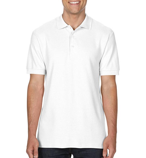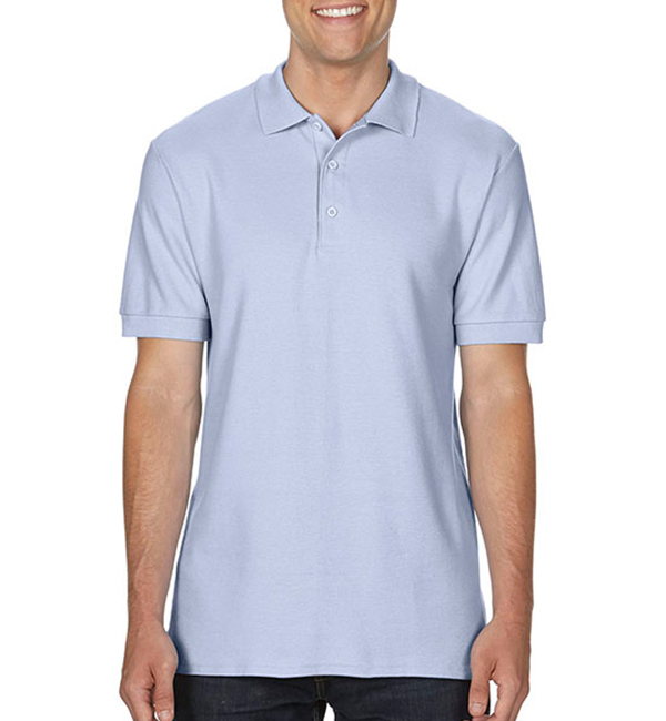 white czarny sport grey dark heather charcoal graphite heather navy royal lagoon blue chambray light blue flo blue sapphire purple red tangerine coral silk light pink bright salmon heliconia terracotta maroon military green irish green kiwi green chalky mint forest green daisy gold sandGILDAN polo męskie Premium Double Piqué 220g