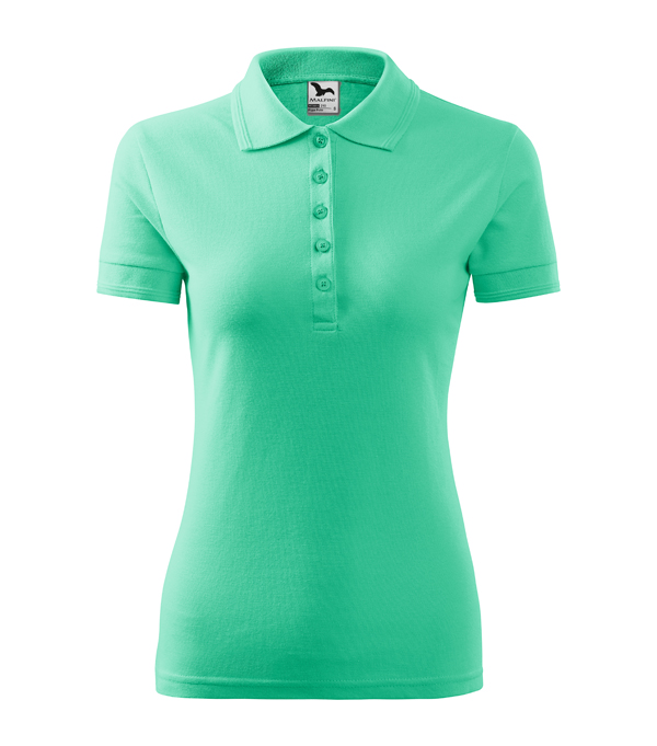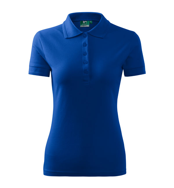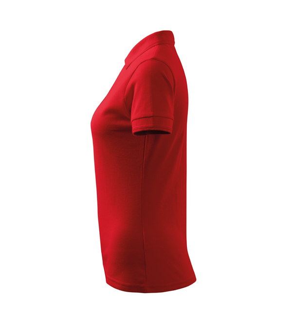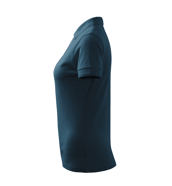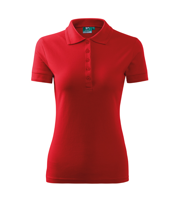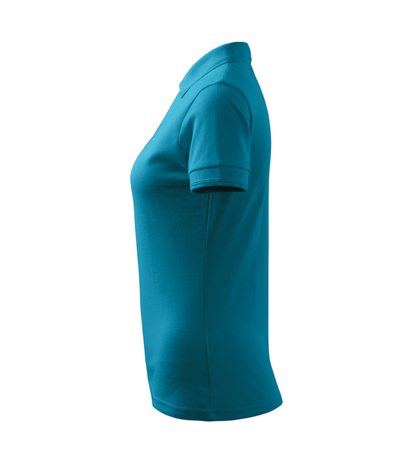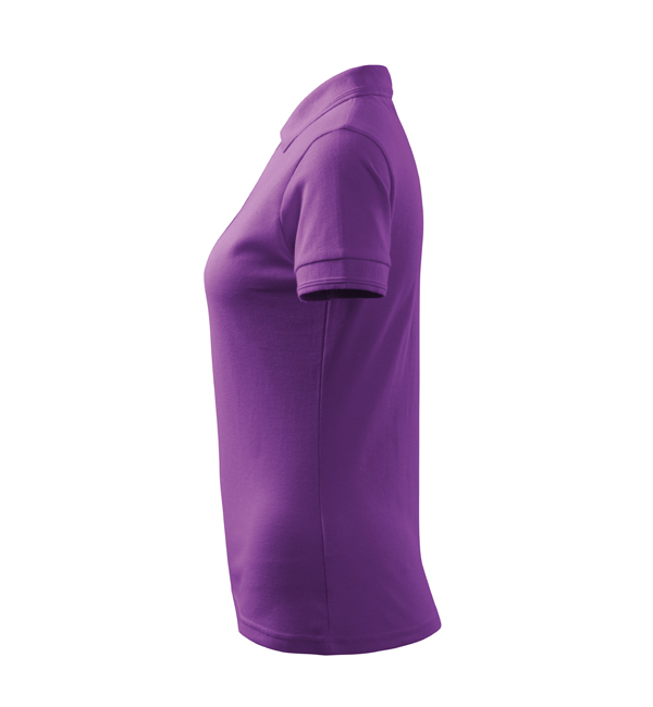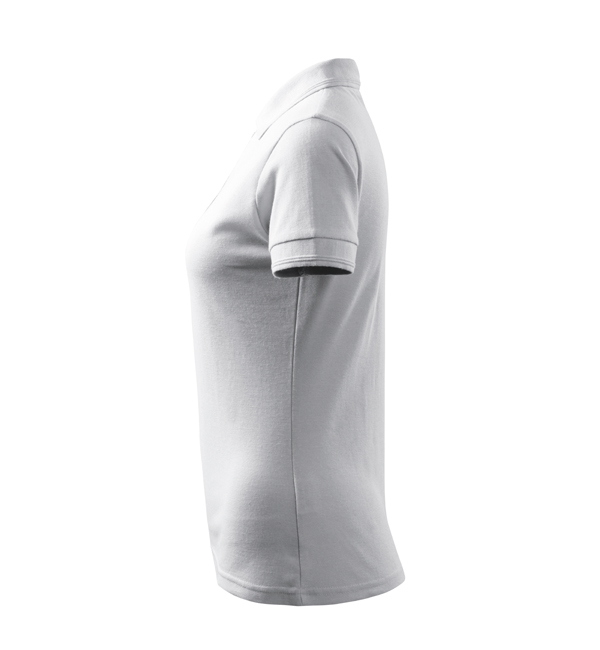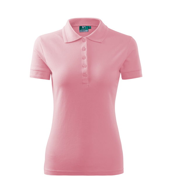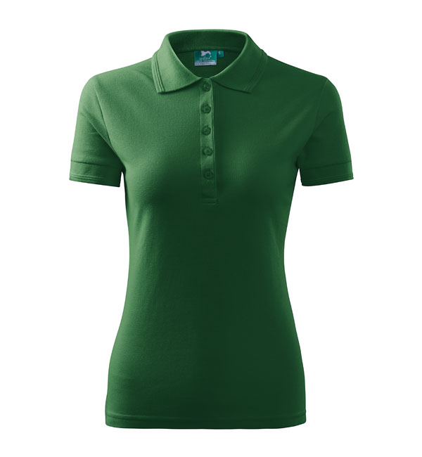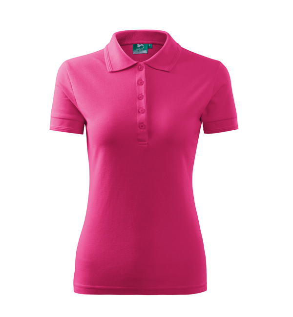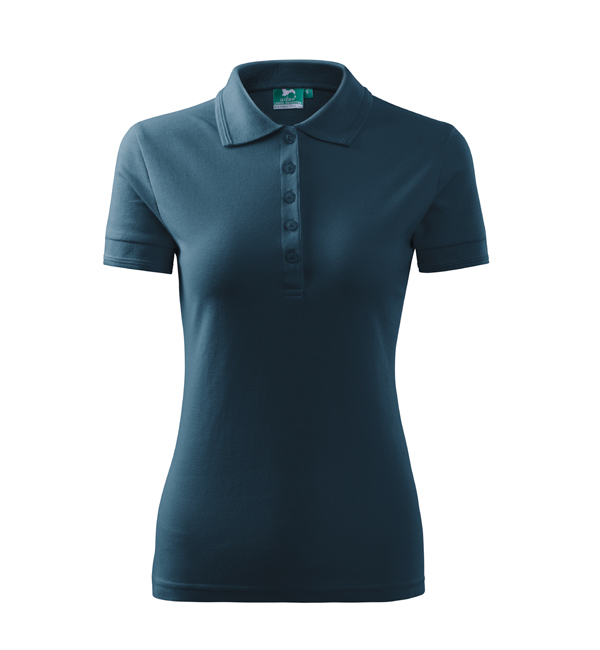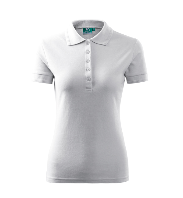 Koszulka polo damska z krótkim rękawem, ze splotu pique. Elegancki krój damski. Przedłużone wąskie obszycia z 5 guzikami. Długość podkoszulka – do bioder. Doskonała pod haft i nadruk.