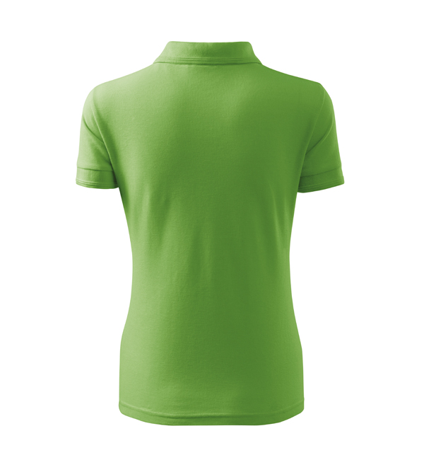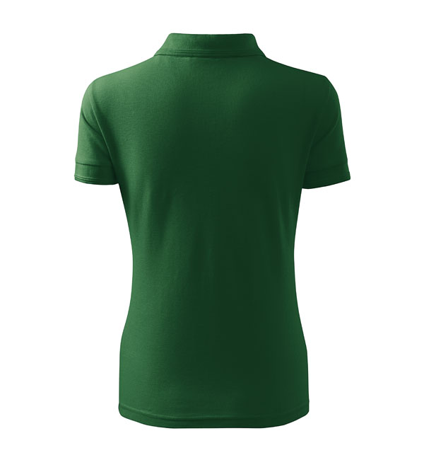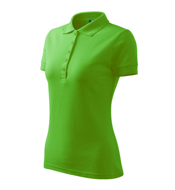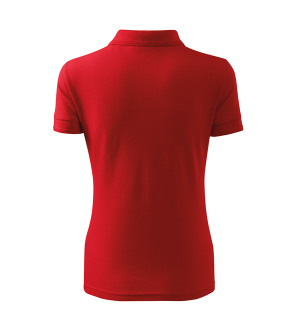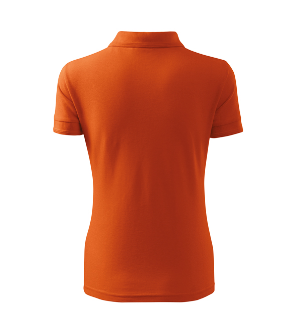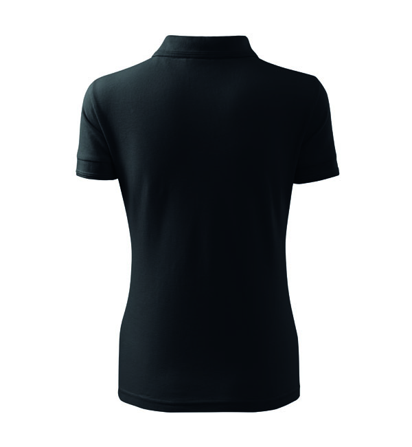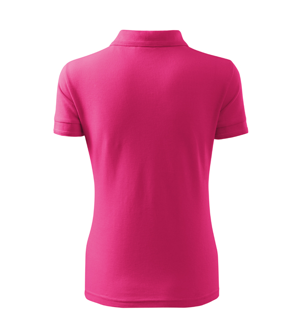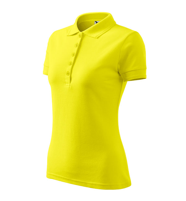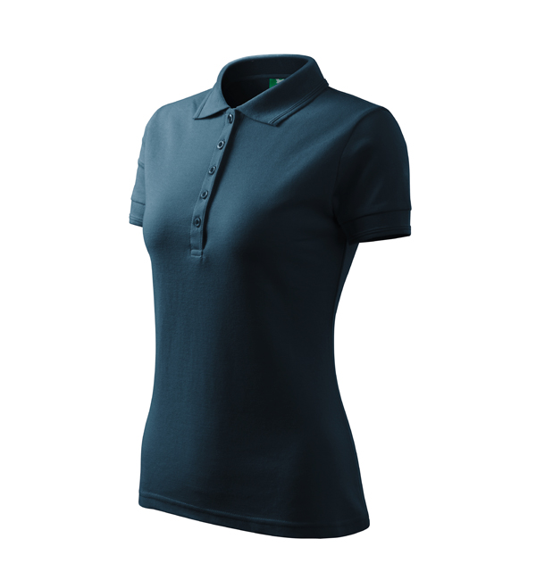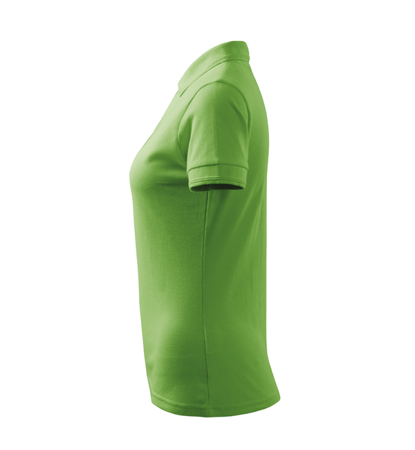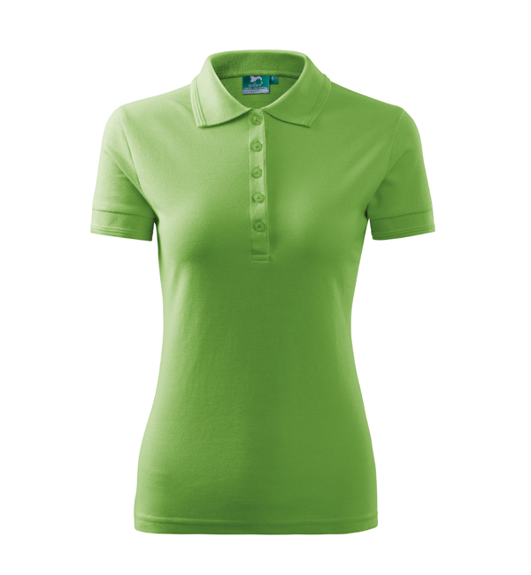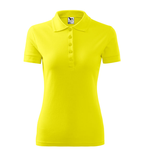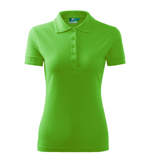 Koszulka polo damska z krótkim rękawem, ze splotu pique. Elegancki krój damski. Przedłużone wąskie obszycia z 5 guzikami. Długość podkoszulka – do bioder. Doskonała pod haft i nadruk.