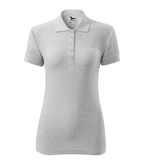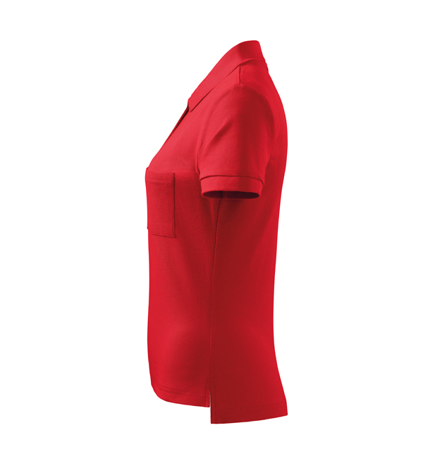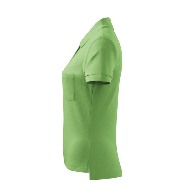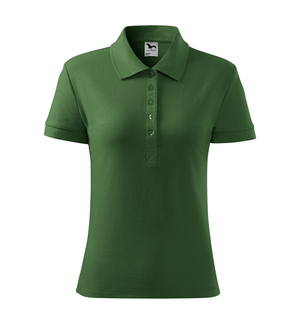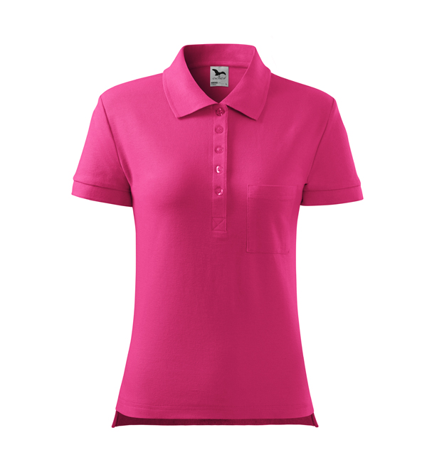 Koszulka Polo damska o średniej gramaturze z przedłużoną tylną częścią. Przedłużona część tylna oraz rozcięcie w szwach bocznych. Listwa z 5 guzikami w kolorze materiału. Kołnierz oraz rękawy wykończone lamówką ze splotu żeberkowego. Uzupełnienie modelu męskiego koszulki Polo Cotton. Świetnie nadaje się pod haft i nadruk.