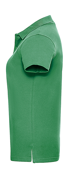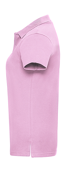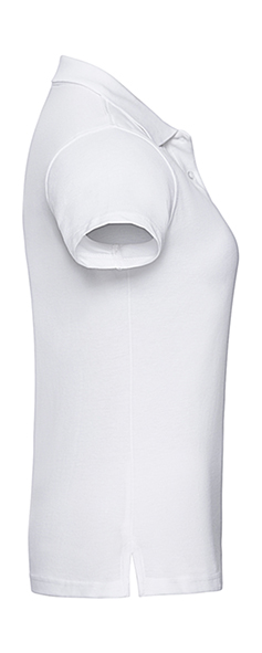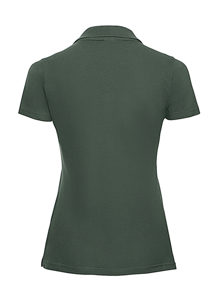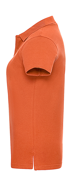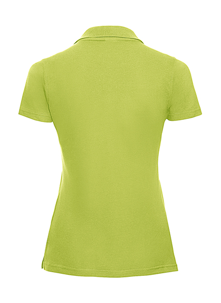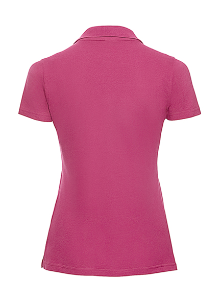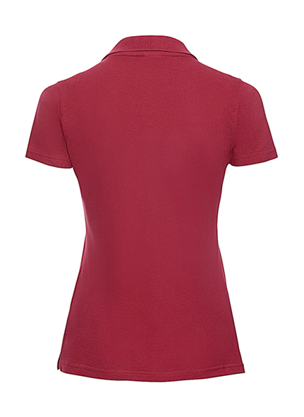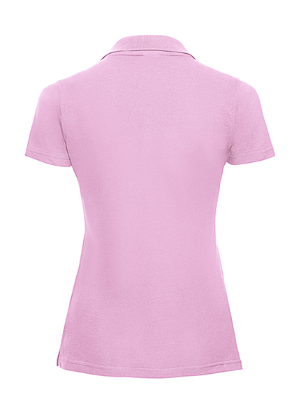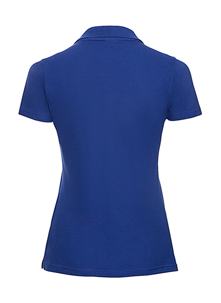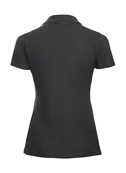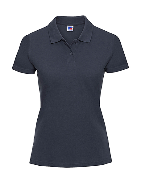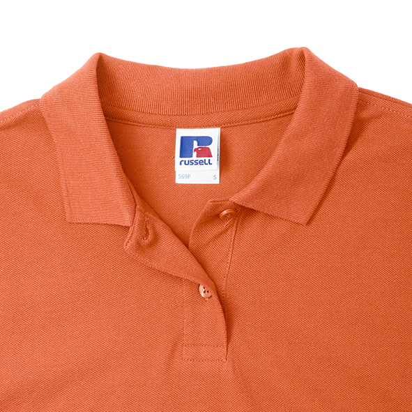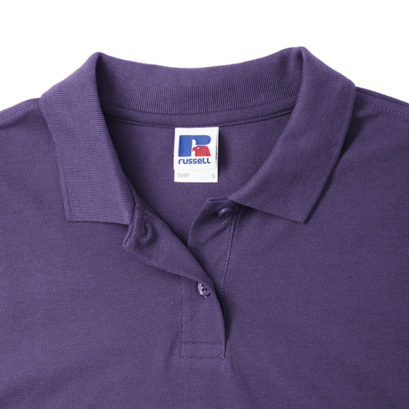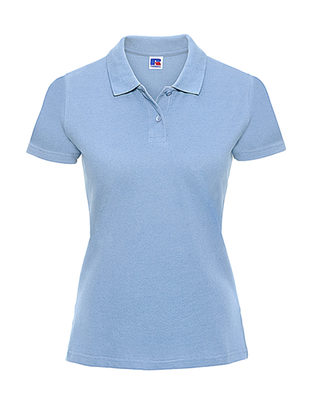 Koszulki polo damskie marki Russell z zapięciem na 2 guziki. Wykonane w 100% z pikowanej bawełny ring-spun. Taśma wzmacniająca na szyi dla większego komfortu. Boczne szwy z rozcięciem. Rękawy z podwójnym przeszyciem. Wzmocnione szwy na ramionach. Dół koszulki polo wykończony podwójnym ściegiem. Zapasowy guzik na szwie bocznym.