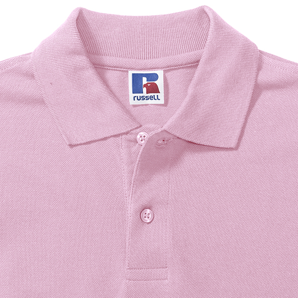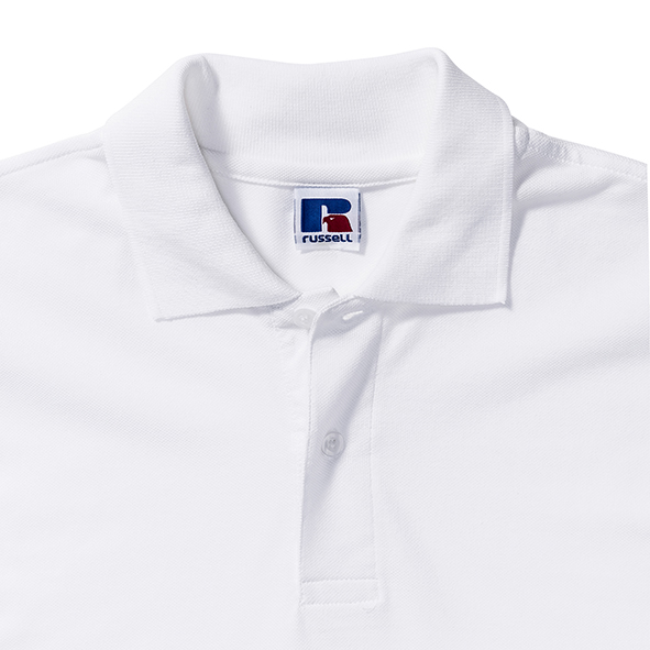 Koszulki polo męskie marki Russell z zapięciem na 2 guziki. Wykonane w 100% z pikowanej bawełny ring-spun. Taśma wzmacniająca na szyi dla większego komfortu. Boczne szwy z rozcięciem. Klasyczne, płaskie, stylowe, mankiety dzianinowe. Na ramionach wzmocnione szwy. Dół koszulek polo wykończony podwójnym szwem. Zapasowy guzik na szwie bocznym.