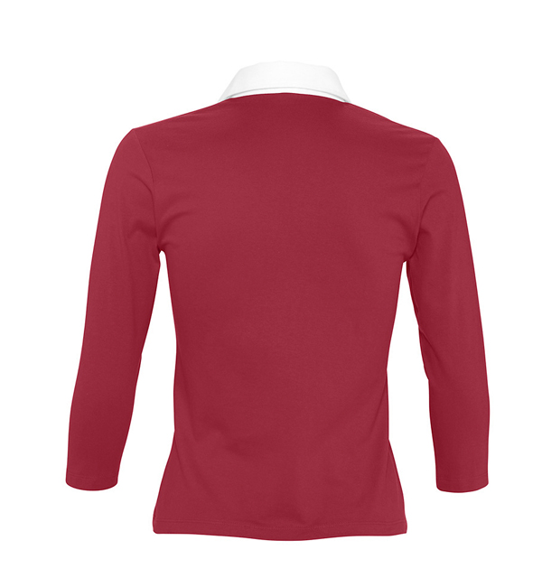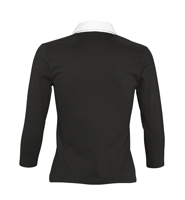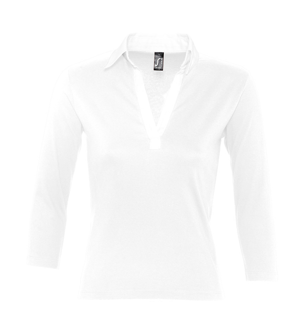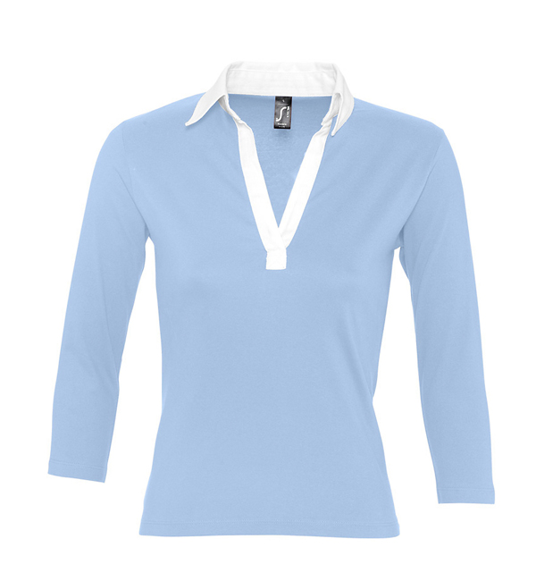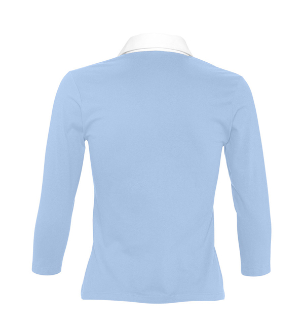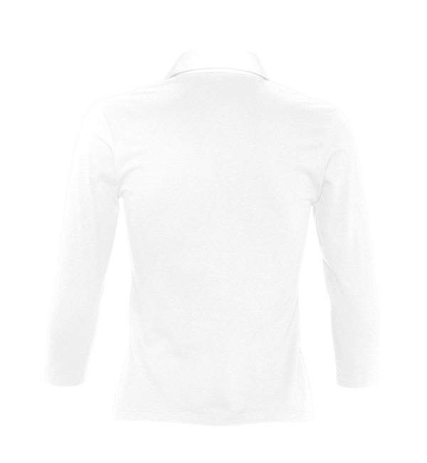 100% bawełny czesanej, wzmacniająca taśma na karku. Kobiecy styl, kołnierzyk i plisa z guzikami w kolorze białym, rękawy 3/4, boczne szwy.