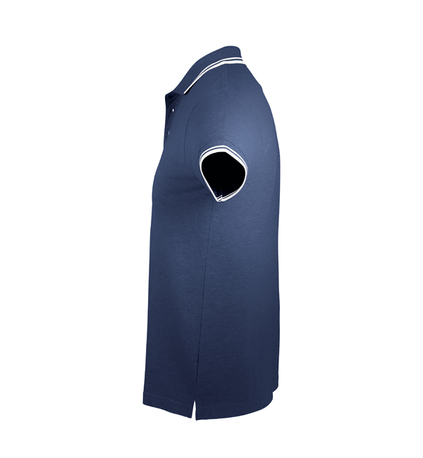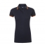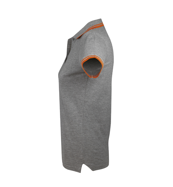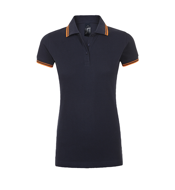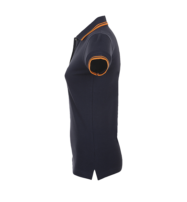 Koszulka damska polo ze 100% bawełny. Klasyczny krój, nowoczesny dwukolorowy wzór. Kołnierzyk i zakończenie rękawów zakończone ściągaczem, plisa z 3-guzikami pod kolor tkaniny. Prosty dół z rozcięciami po bokach.
