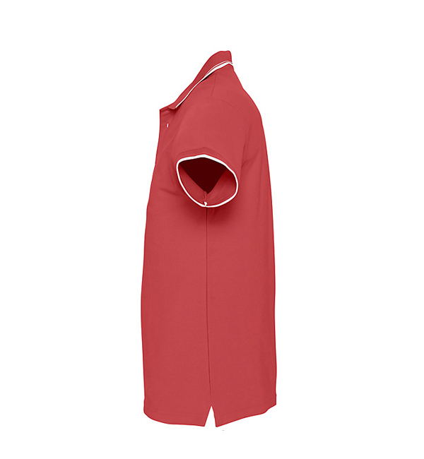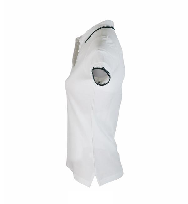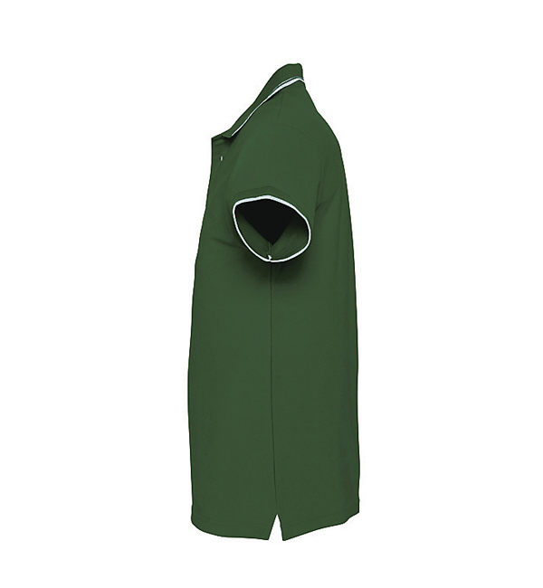 100% bawełny czesanej, kołnierzyk i rękawy wykończone ścięgiem. Wzmacniająca taśma na karku. Klasyczny styl. Na kołnierzyku i dole rękawów kontrastujace paski, plisa z guzikami pod kolor tkaniny. Prosty dół z kontrastującym wykończeniem, rozcięcia po bokach, boczne szwy.