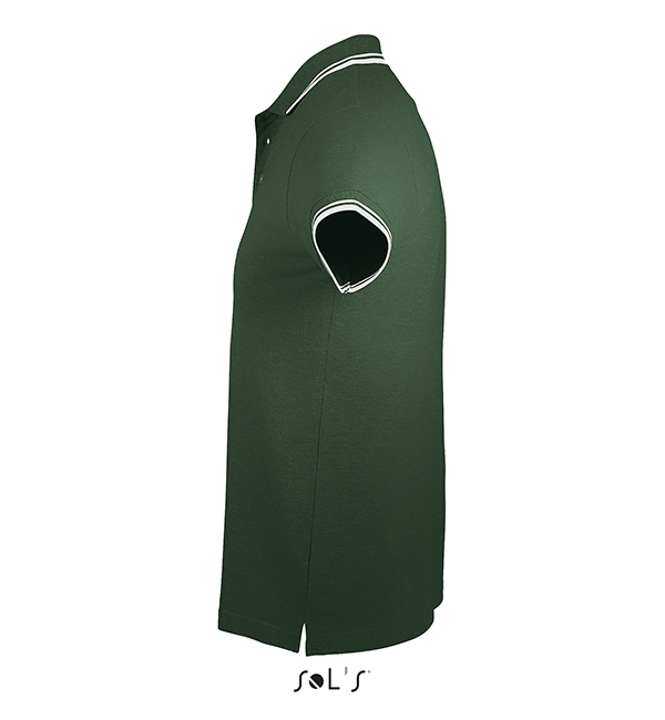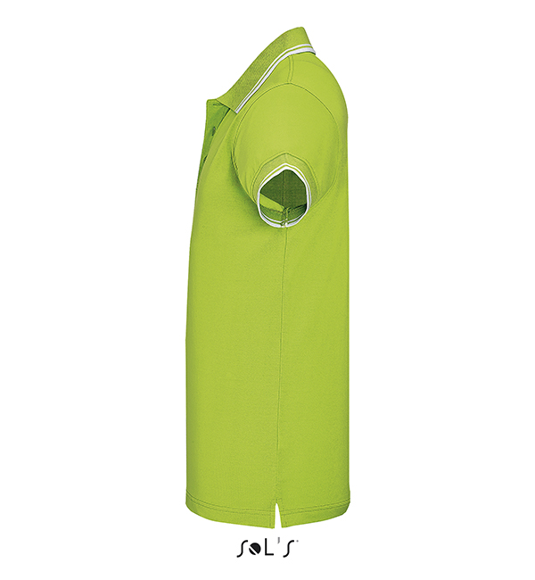 100% bawełna typu Ringspun. Kołnierz i mankiety wzmocnienie taśmą na szyi. Klasyczny i elegancki styl. Krótkie rękawy i skontrastowane paski na kołnierzyku. Rozcięcia po bokach, zapasowy guzik wewnątrz koszulki.