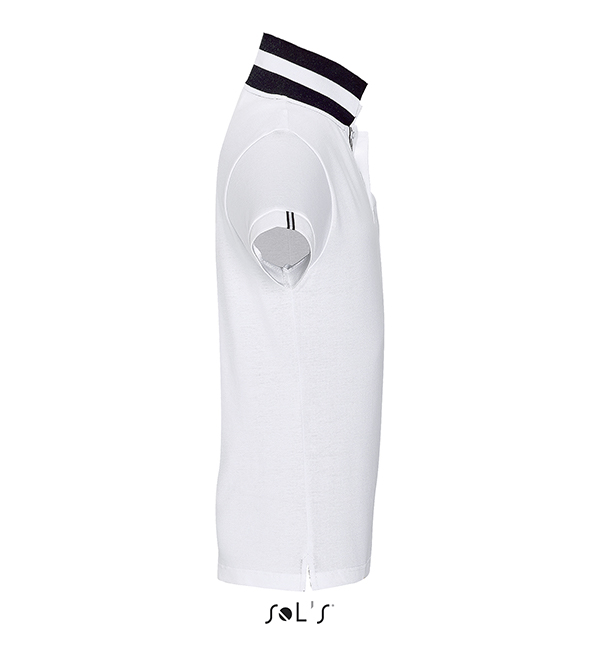 100% bawełna typu Ringspun. Kołnierz i mankiety wzmocnienie taśmą na szyję. Modny styl, krótkie rękawy. Rozpinany dekolt, boczne rozcięcia, 2-kolorowe paski z mankietami przy kołnierzu, zapinana na dwa guziczki. Zapasowy guzik w środku. Ciekawe kolory.