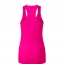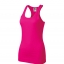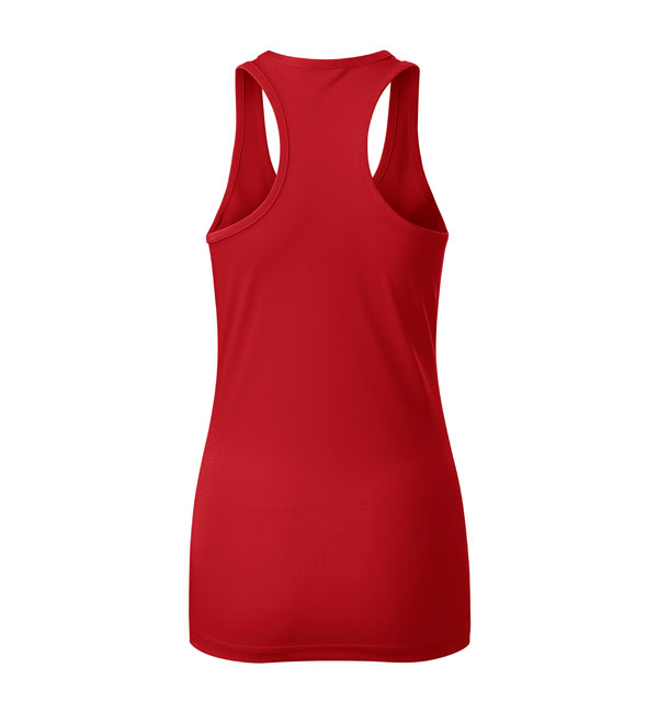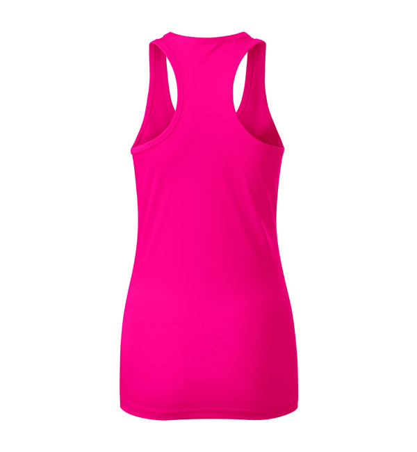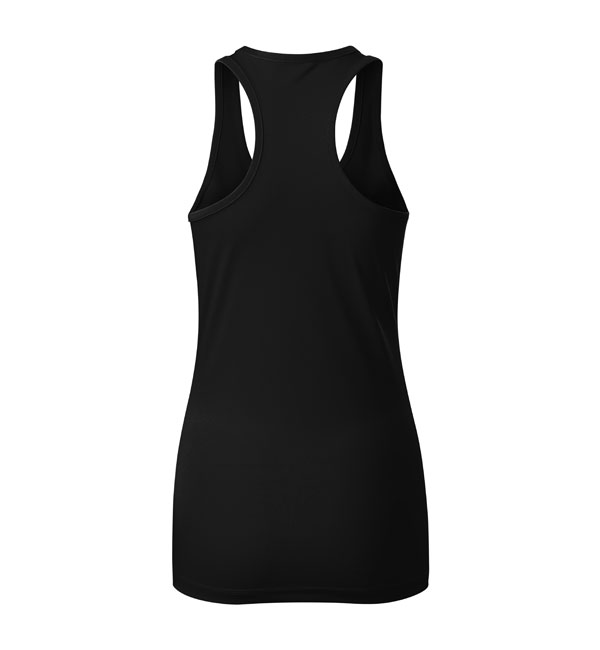 Gładki szybkoschnący materiał; dopasowany krój ze szwami bocznymi; wcięcia przy łopatkach (racerback); szersza okrągła lamówka; dekolt oraz otwory wokół ramion wykończone lamówką z materiału wierzchniego; idealne do uprawiania sportu i aktywnośći fizycznej;