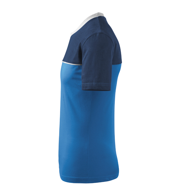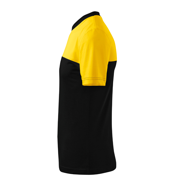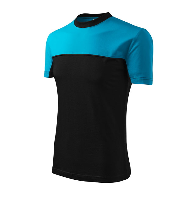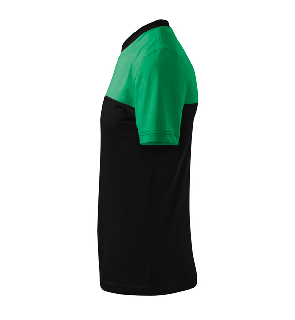 Trójkolorowa koszulka męska o wysokiej gramaturze, szczególnie nadająca się pod nadruki oraz hafty. Okrągłe wycięcie z zawartością 5% elastanu, podwójne szwy, wzmacniający ramienny pasek, korpus bez szwów. Wyróżnia się świetną jakością materiału i szycia.