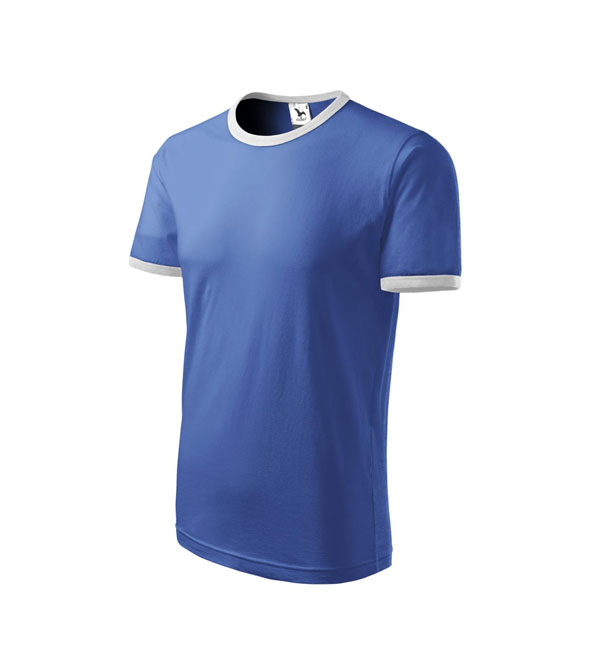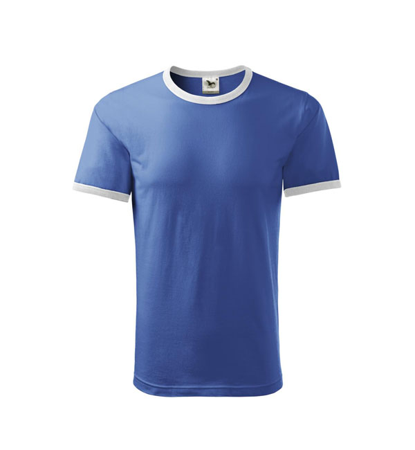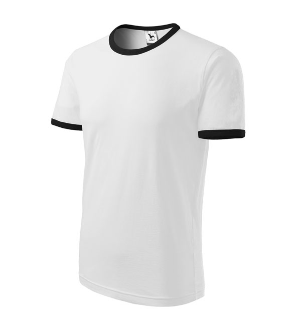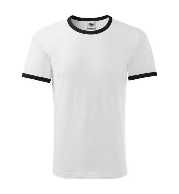Wysokiej jakości koszulka, doskonała pod haft i nadruk. Modna, wąska, prążkowana lamówka przy dekolcie oraz na rękawach w kontrastowych kolorach. Krój z bocznymi szwami.