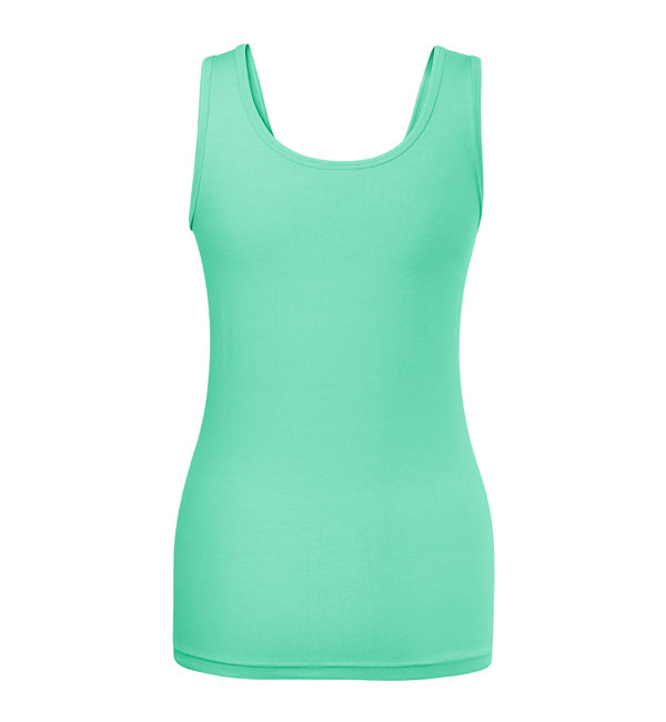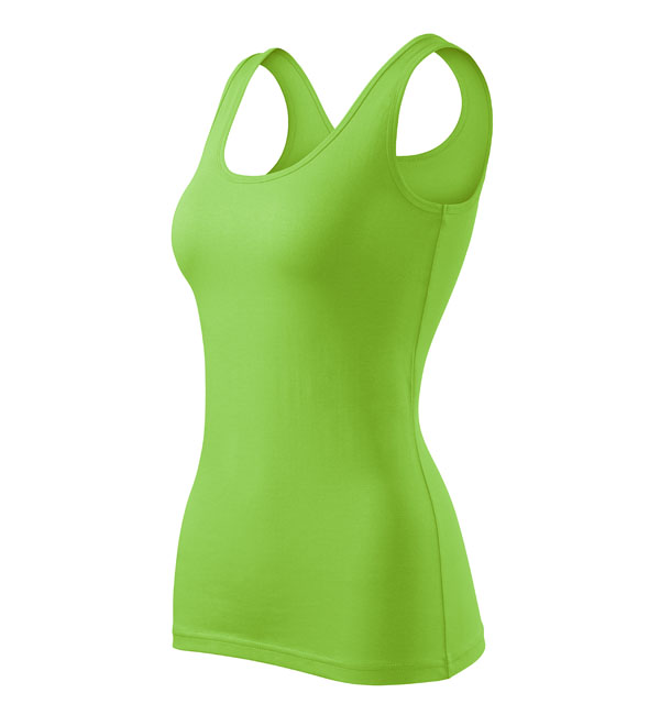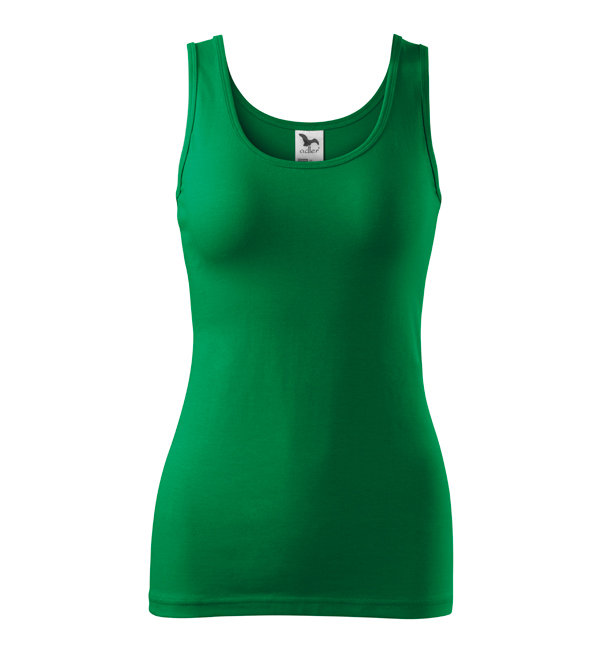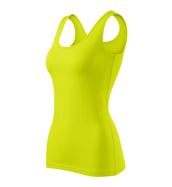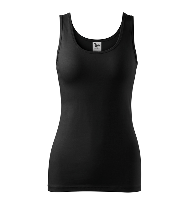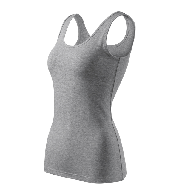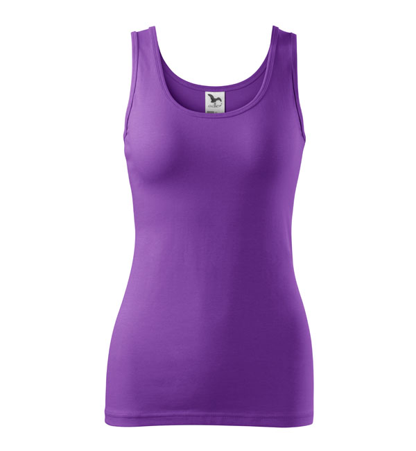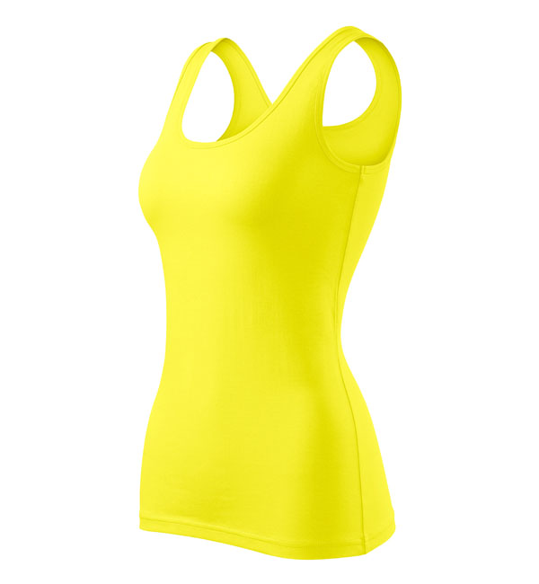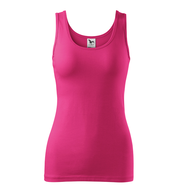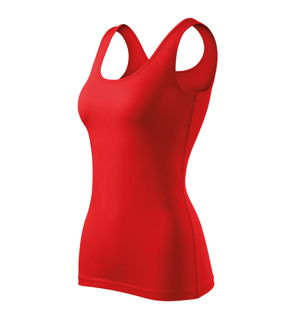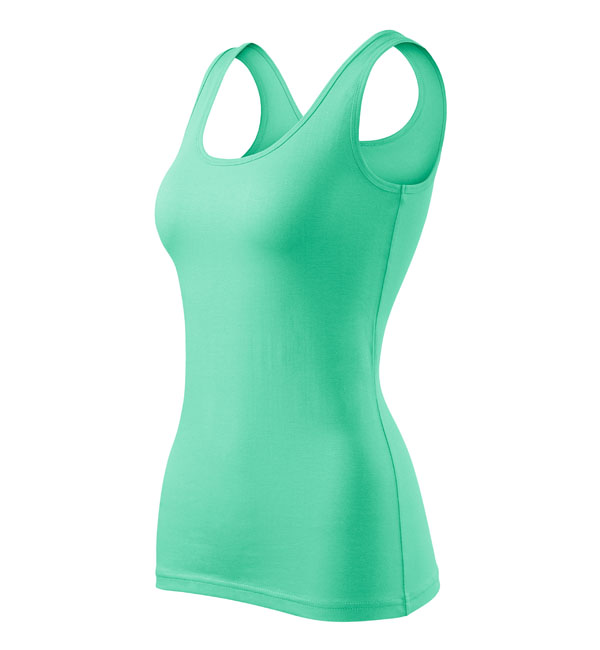 Damska koszulka przylegająca do ciała na szerszych ramiączkach. Przedłużony fason. Przyjemny materiał z dodatkiem elastanu , dzięki któremu nie zmienia kształtu. Doskonała pod nadruk i haft.