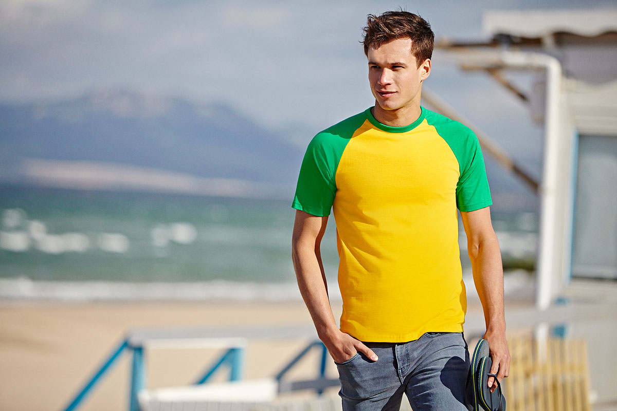 czerwony niebieski ciemnogranatowy czarny żółty kelly green szaryFRUIT OF THE LOOM Short Sleeve Baseball T-Shirt 165g