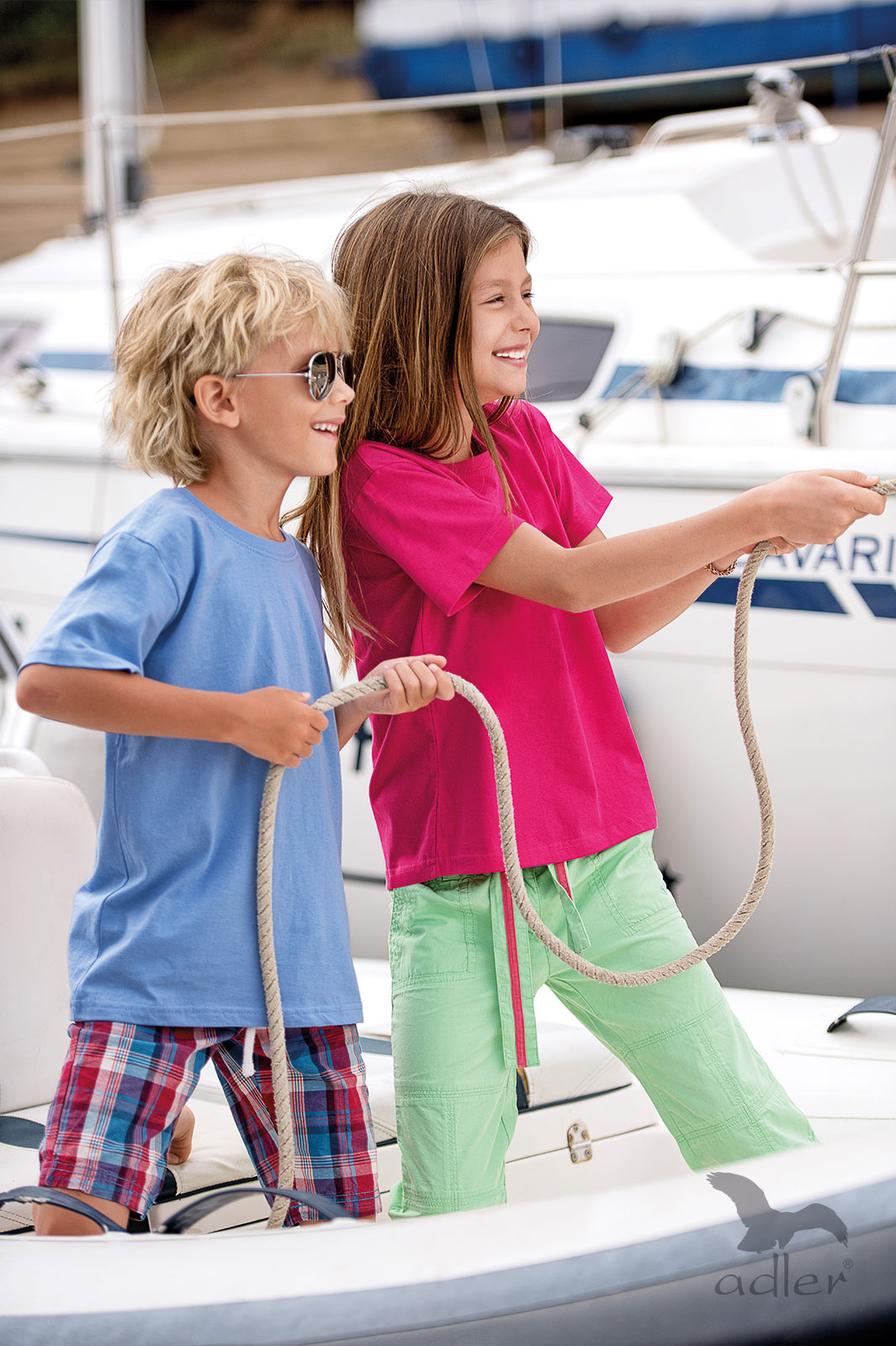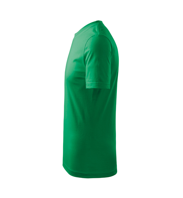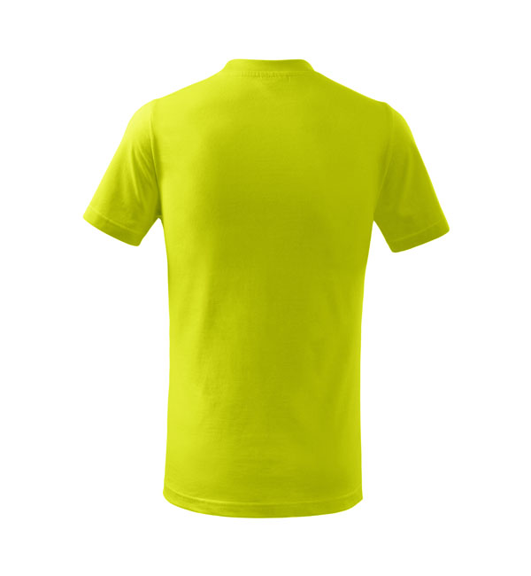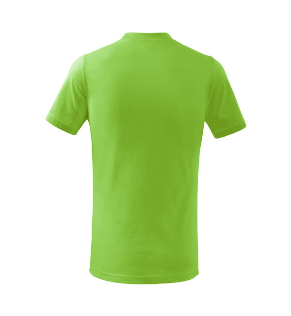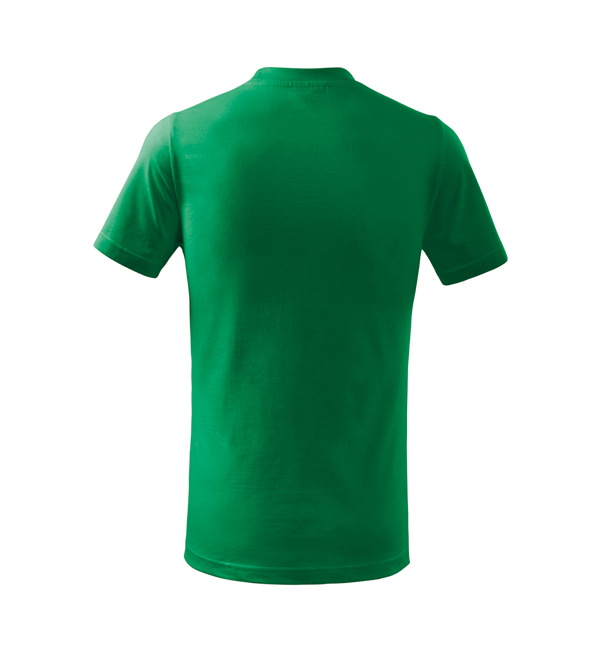 Koszulka dziecięca o średniej gramaturze ze szwami bocznymi. Wąska lamówka z dodatkiem 5 % elastanu. Wewnętrzna tylna część u szyji wykończona taśmą. Wzmocnienie na ramionach. Wykończenie sylikonowe podkreśla ekskluzywny wygląd koszulki. Doskonała pod nadruk i haft.