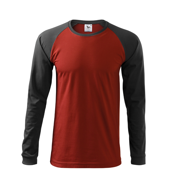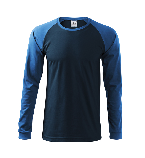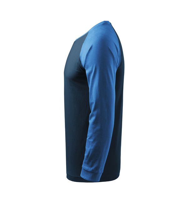 Wysokiej jakości koszulka męska z długim raglanowym rękawem. Modna wąska lamówka prz dekolcie oraz rękawy w kontrastowych kolorach. Lamówka przy dekolcie jest z dodatkiem 5 % elastanu. Krój z bocznymi szwami. Doskonała pod haft i nadruk.