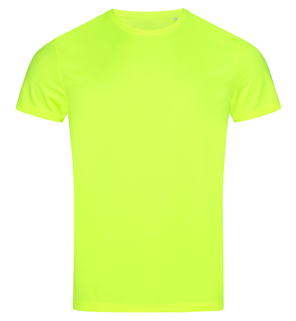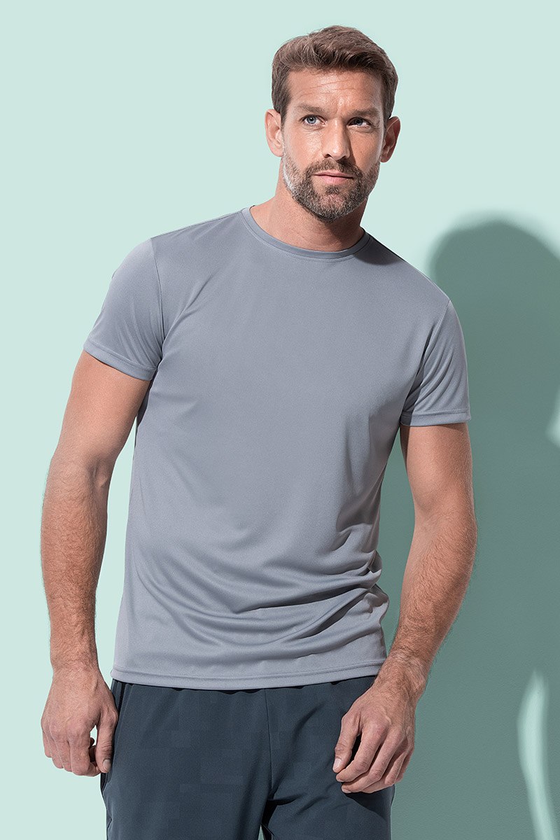 Męski T-Shirt Active Sports-T. Gładka i lekka dzianina 100% ACTIVE-DRY poliester, interlock, obszycie dekoltu z tej samej dzianiny, co cały model, dekoracyjne szwy na ramionach, odblaskowe logo ACTIVE-DRY° na plecach, mała metka na karku, etykietka z przepisem prania w szwie bocznym, Body Fit, szwy po bokach, maksymalna temperatura prania 40°C.