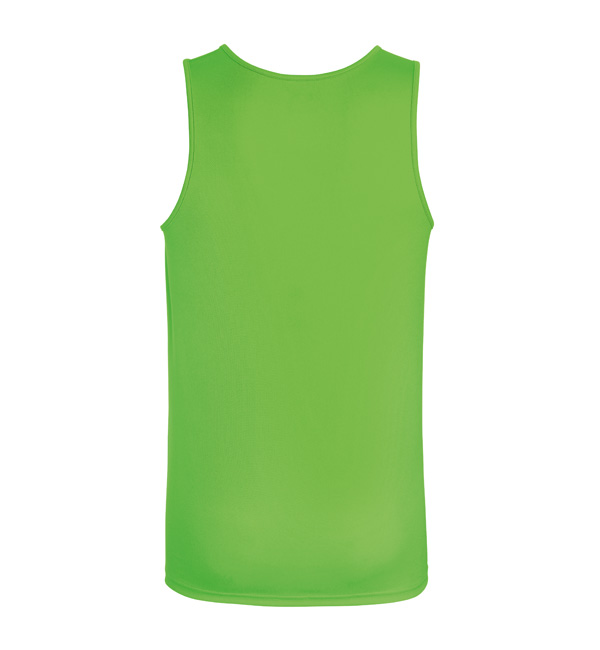 Wykonana w 100% z poliestru teksturowanego, aby lepiej odprowadzać wilgoć i szybciej schnąć. Dekolt i wycięcia na ręce wykończone lamówką z tego samego materiału. Metka nadrukowana na karczku dla większego komfortu.