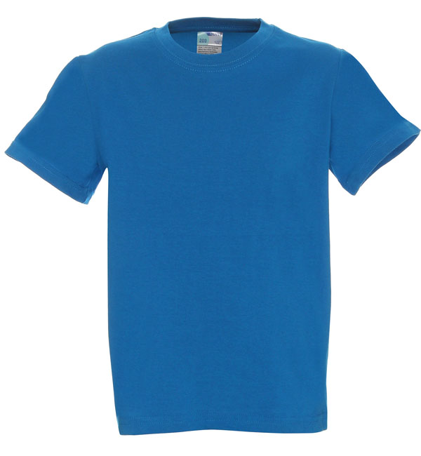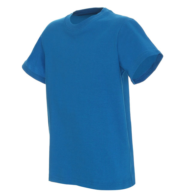 t-shirt dziecięcy z dzianiny single jersey; bawełniany ściągacz; boki bezszwowe; podwójne szwy.