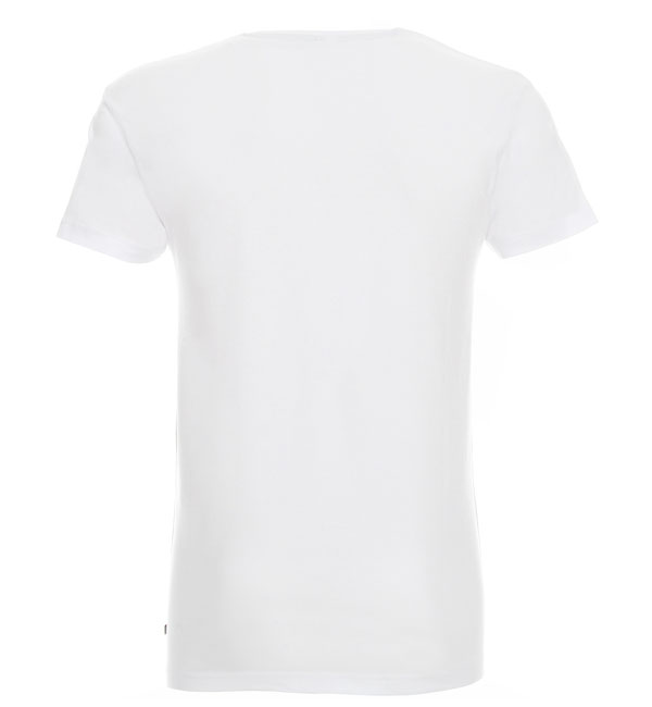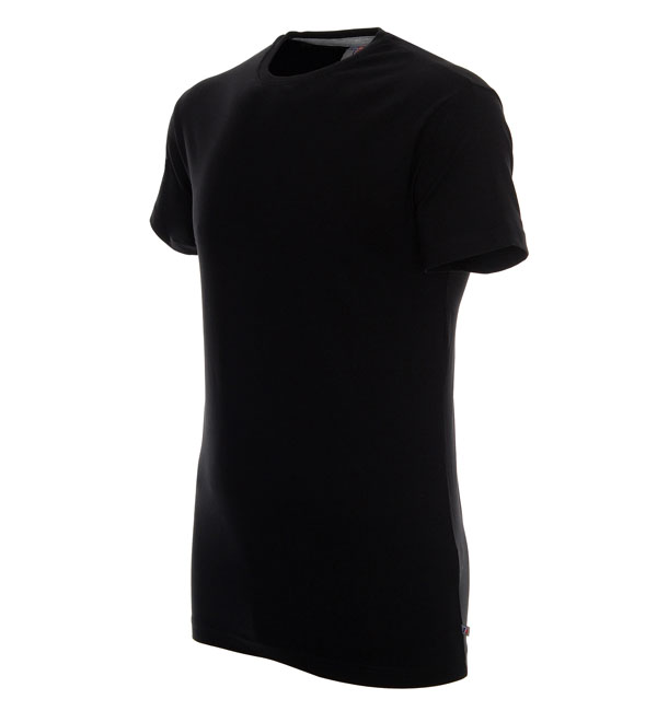 Dopasowany krój; elastyczny ściągacz; podwójne szwy; taśma wzmacniająca na karku w kontrastowym kolorze.