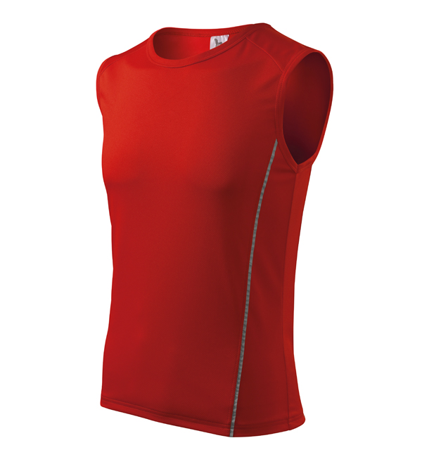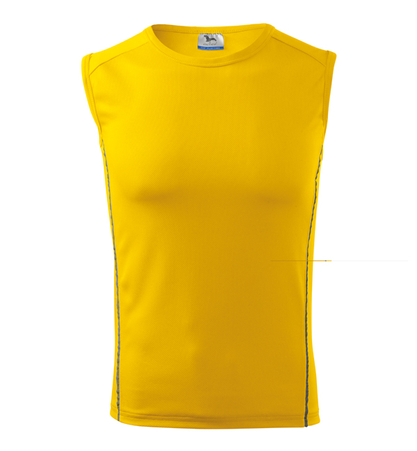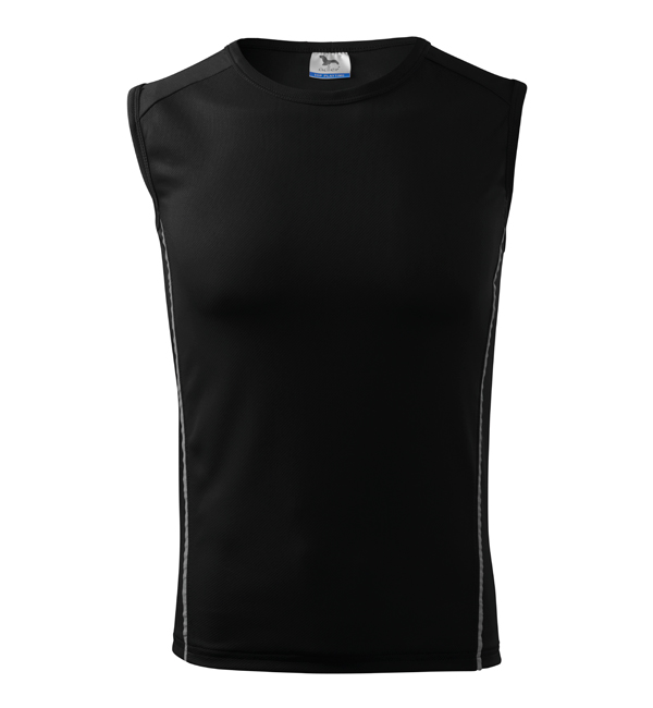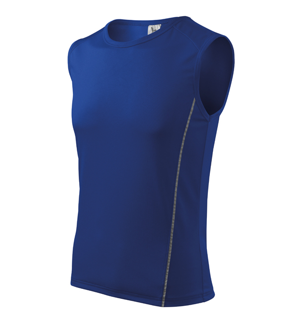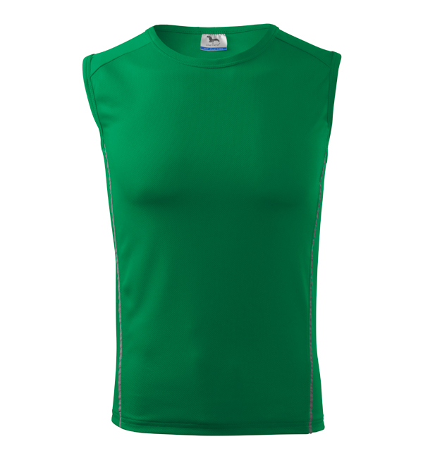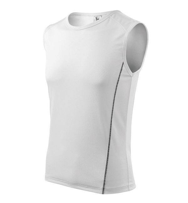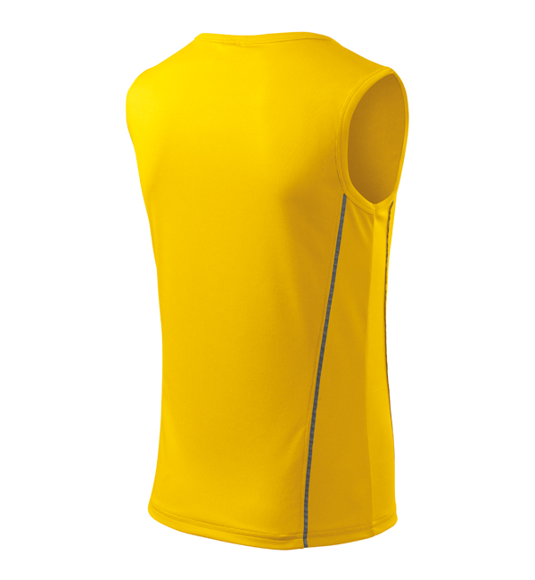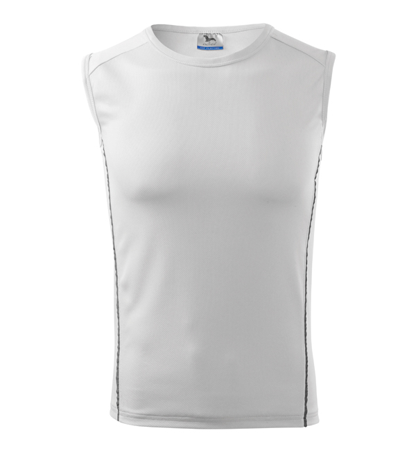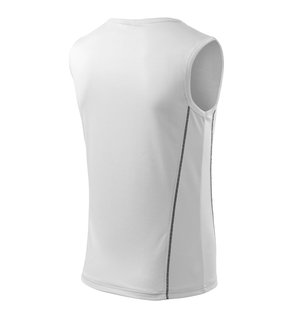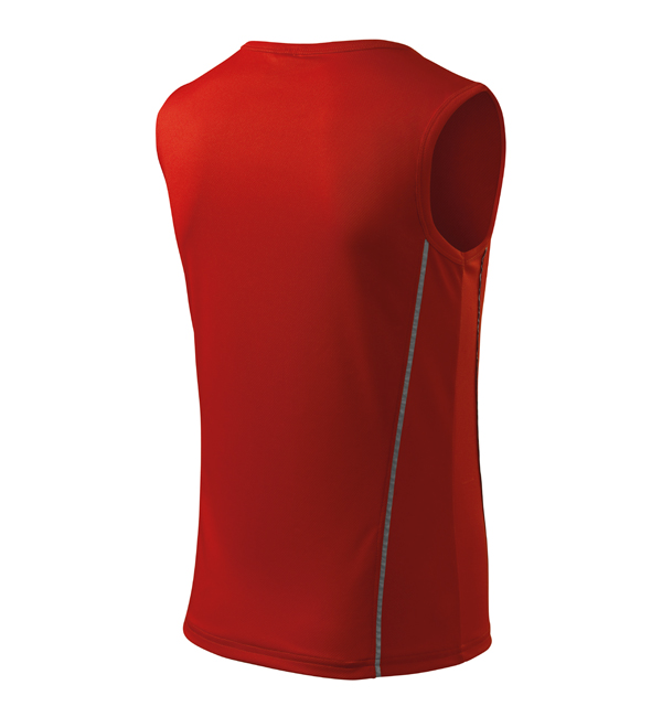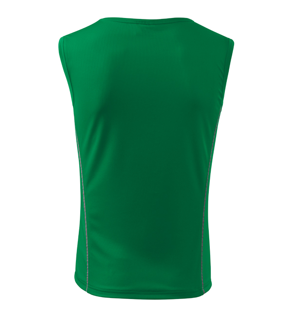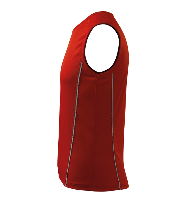 Koszulka-bezrękawnik, ukształtowana w części ramieniowej szwem dzielącym. Nadaje się do uprawiania sportu dzięki użyciu włókna formowanego. Owalny dekolt z lamowaniem z podstawowego materiału. Wzdłużne szwy dzielące, zdobione lamowaniem z odblaskowego materiału. Krój z bocznymi szwami.