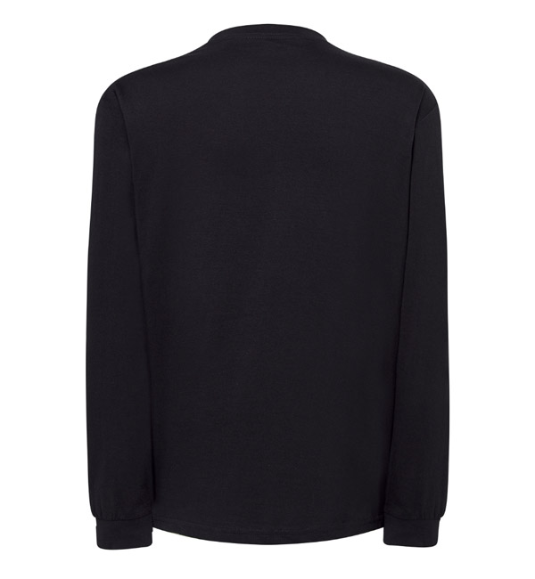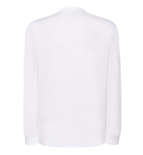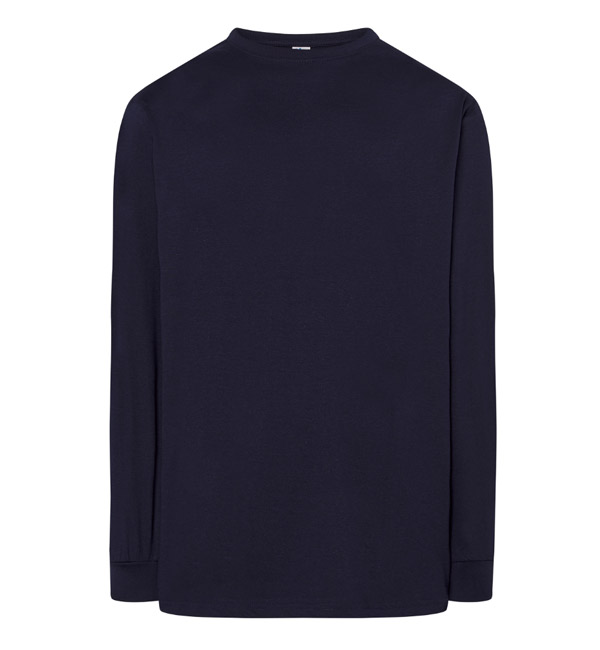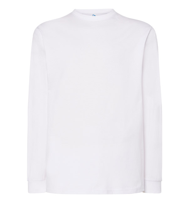 Popularny męski t-shirt z długimi rękawami, 100% bawełna. Zdejmowalna etykieta. Rękawy zakończne ściągaczem. Bez szwów bocznych.Podwójne przeszycia przy wykroju szyi, na ramionach i u dołu. Taśma wzmacniająca od ramienia do ramienia.